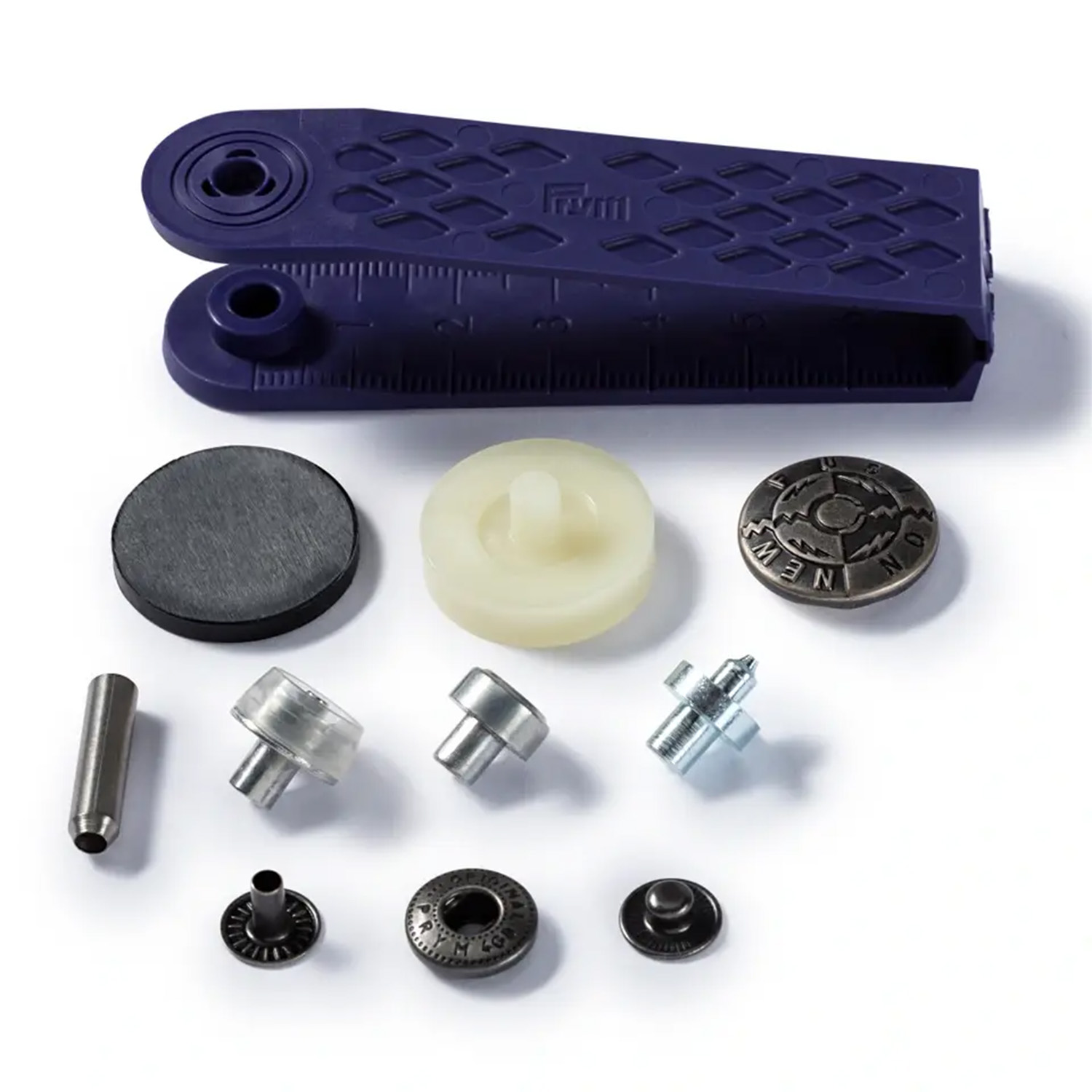 Les boutons pression "Fusion" sont faciles à travailler avec la pince PRYM VARIO, le Creative Tool ou le trépied. Grâce à l'outil fourni, tu peux aussi les fixer facilement à l'aide d'un marteau si nécessaire - parfait pour celles qui veulent se lancer rapidement et sans complications.