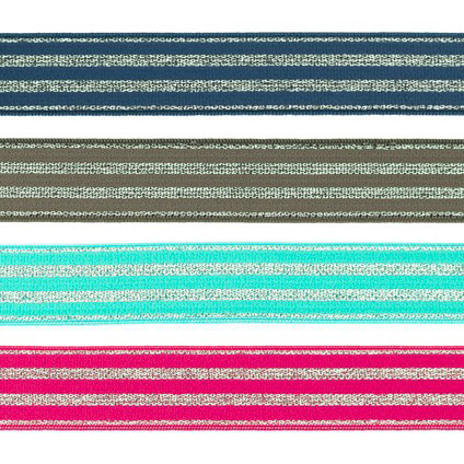 L'élastique est disponible en plusieurs couleurs modernes - du bleu foncé profond et du taupe élégant au turquoise frais et au rose vif. Les bandes de lurex argentées forment un contraste élégant et font de l'élastique un accroche-regard particulier.