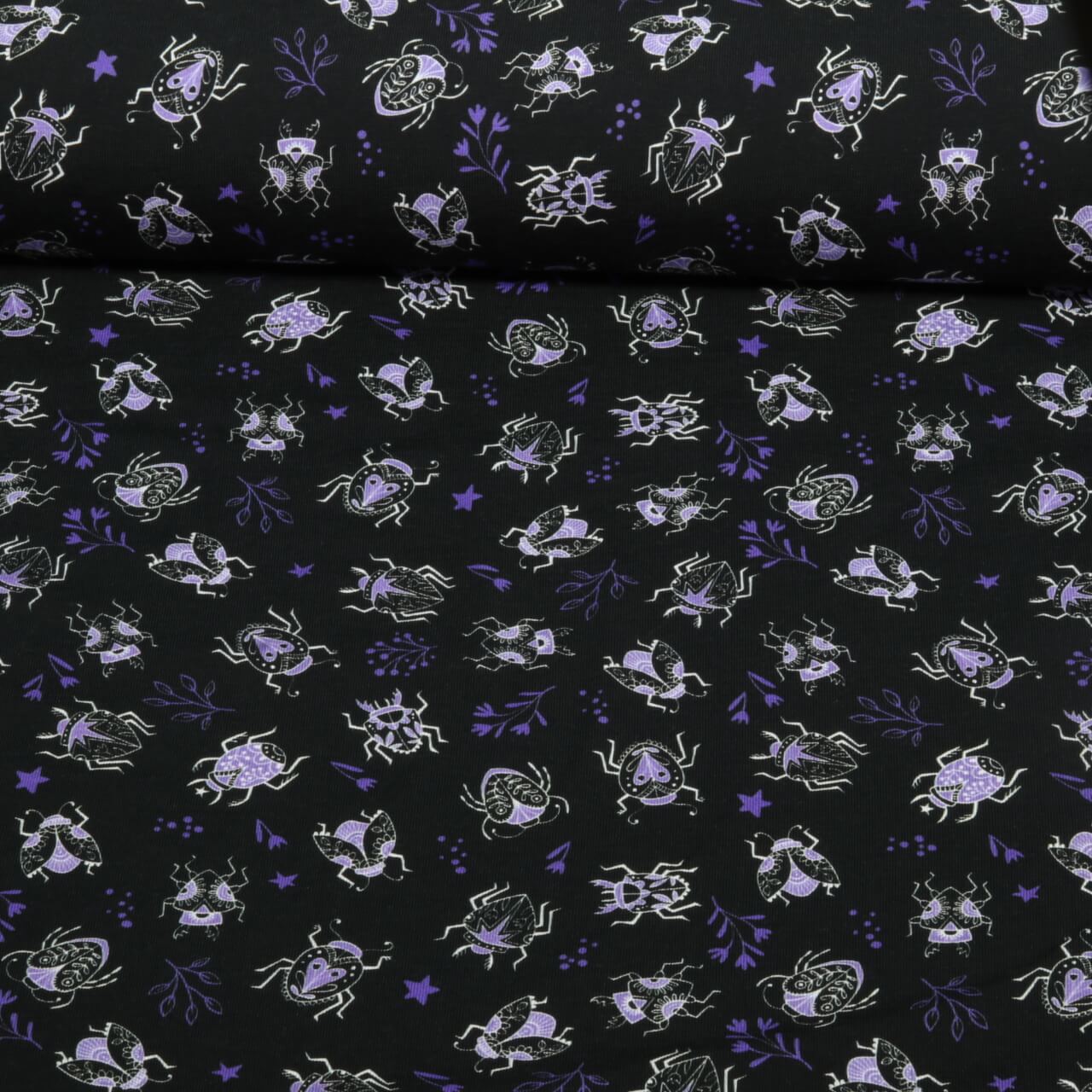 Un tissu comme une aventure secrète dans le jardin la nuit : sur un fond noir profond s'ébattent des scarabées, des libellules et des petits animaux rampants joliment illustrés dans des couleurs vives. De délicates nuances de turquoise et de menthe, un orange chaud, un jaune frais et de douces touches de rose font briller les insectes détaillés et rendent le design vivant et joyeux.