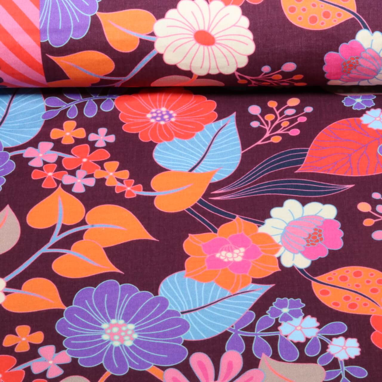 Bio mousseline lisse - HHL Gleam Bloomorama Bordeaux