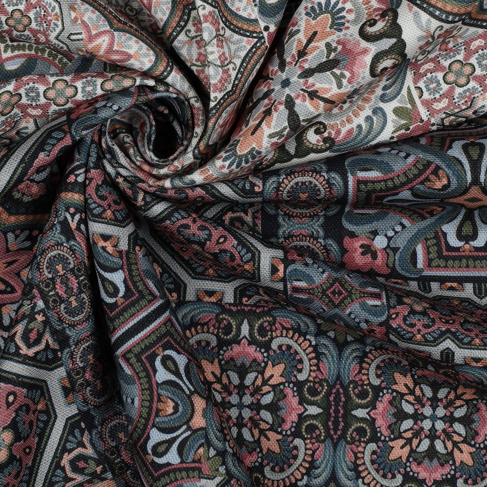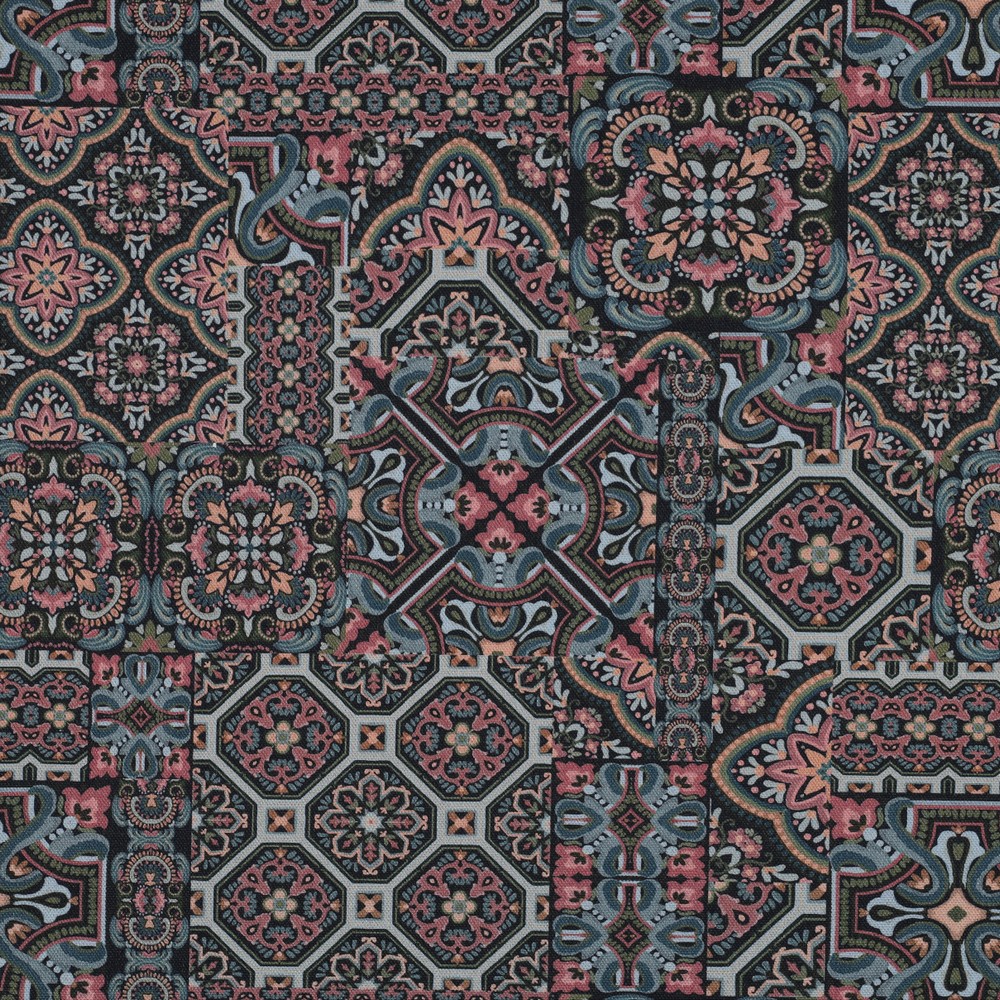 Une touche d’ambiance méditerranéenne pour vos projets de couture : Ce canvas de haute qualité se présente avec un design élégant de carreaux rappelant la céramique peinte à la main des pays du sud. Des ornements délicats, des lignes fines et des motifs symétriques se combinent pour créer une composition harmonieuse qui attire immédiatement le regard.