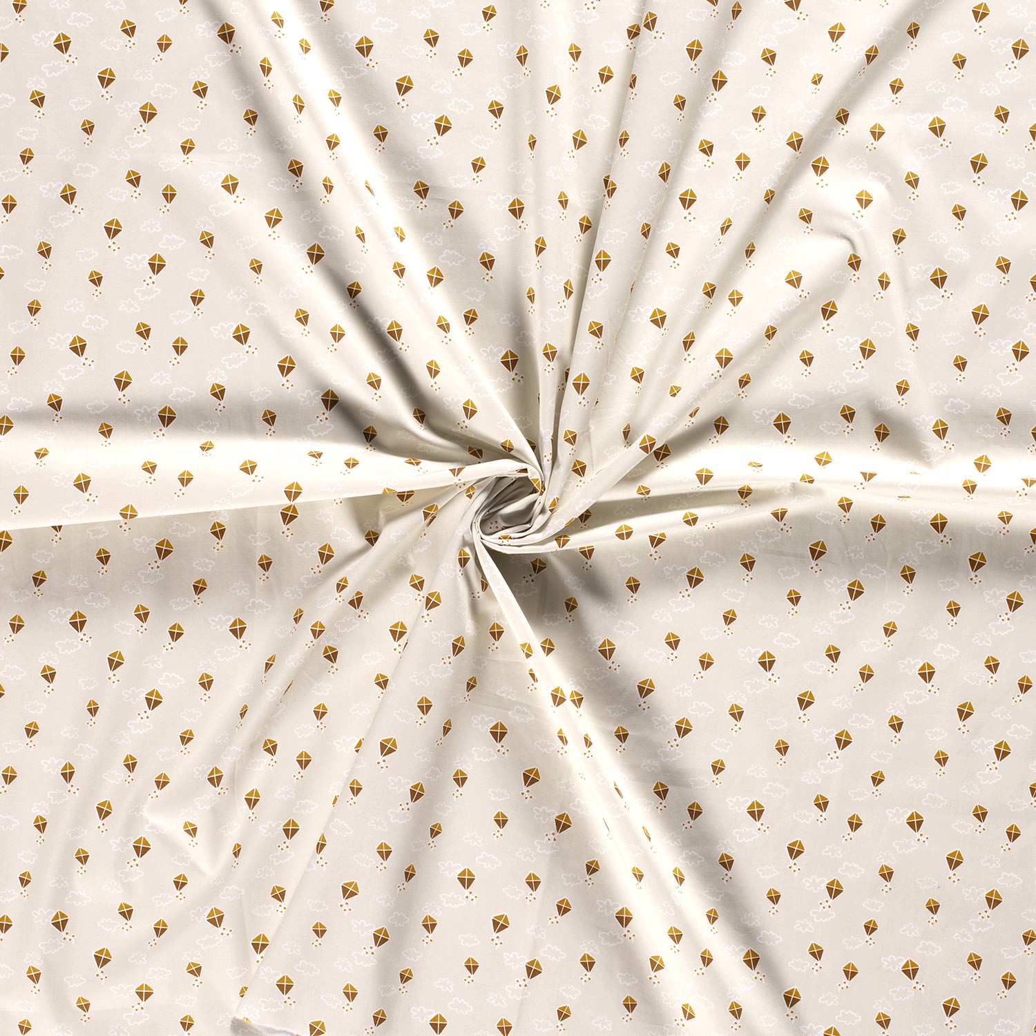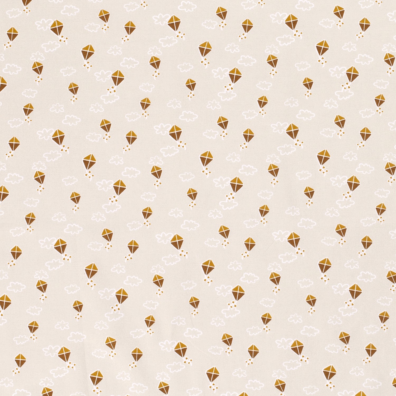 Sur ce tissu en coton beige clair, des dragons colorés dansent joyeusement sur un ciel délicat. De fines nuages et de petits cerfs-volants aux couleurs fraîches comme le rouge, le bleu, le jaune et le vert flottent de manière ludique sur le tissu, lui conférant une allure aérienne et insouciante – comme une journée ensoleillée sur le terrain à cerfs-volants.