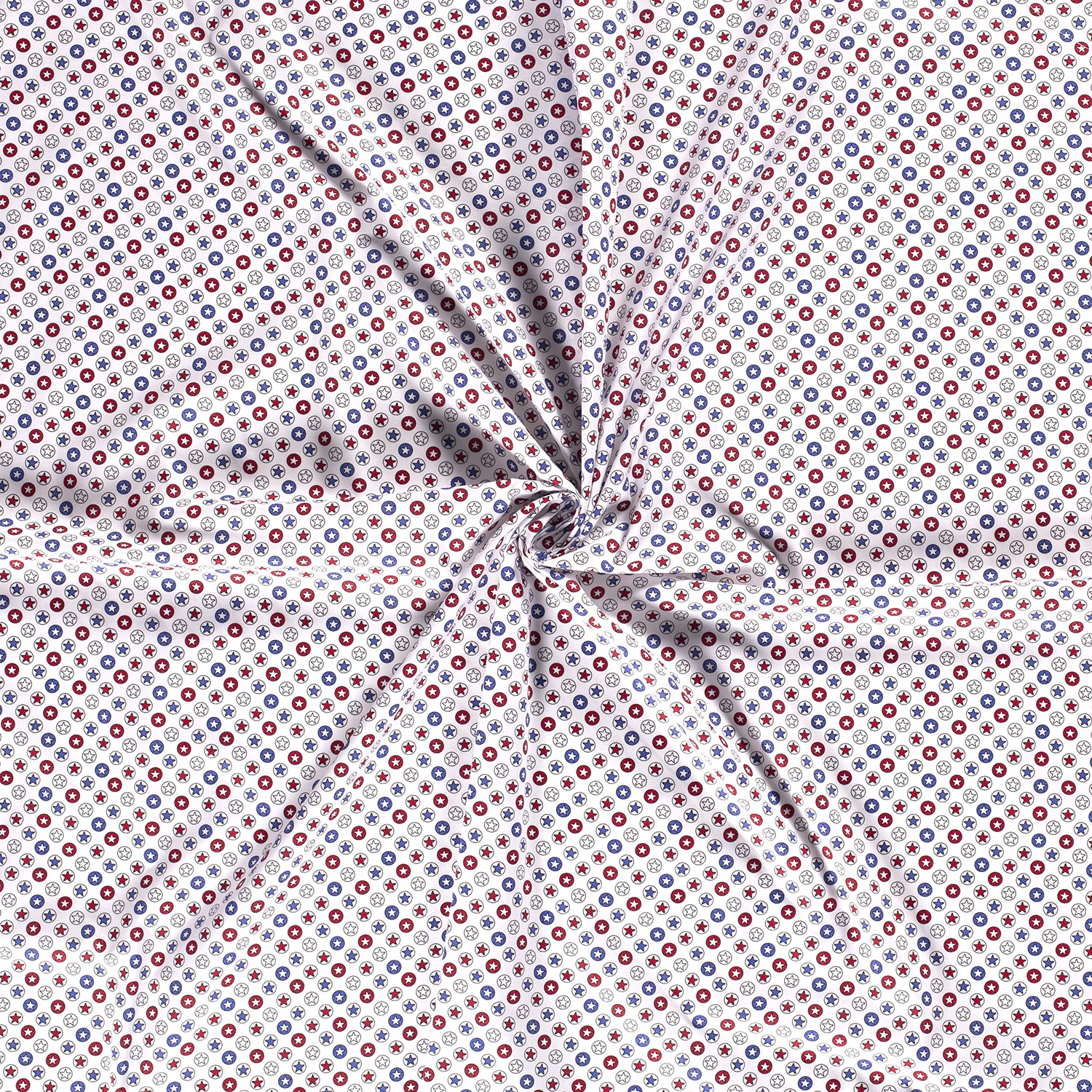 Ce tissu joyeux à étoiles charme au premier regard : Sur un fond blanc éclatant, de petites étoiles sont disposées en cercles fins. Le motif discret et régulier paraît moderne tout en étant ludique – parfait pour ceux qui aiment les formes claires et les détails soignés.