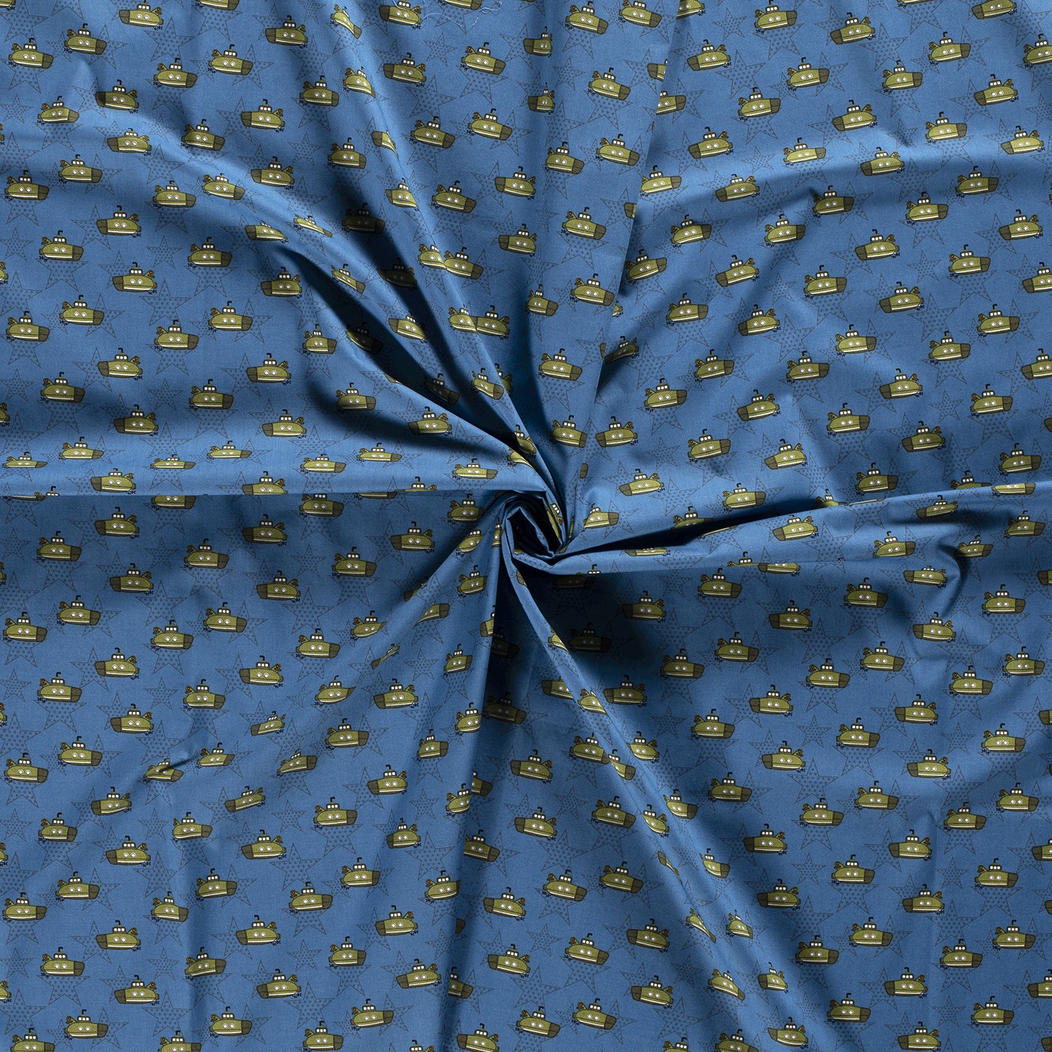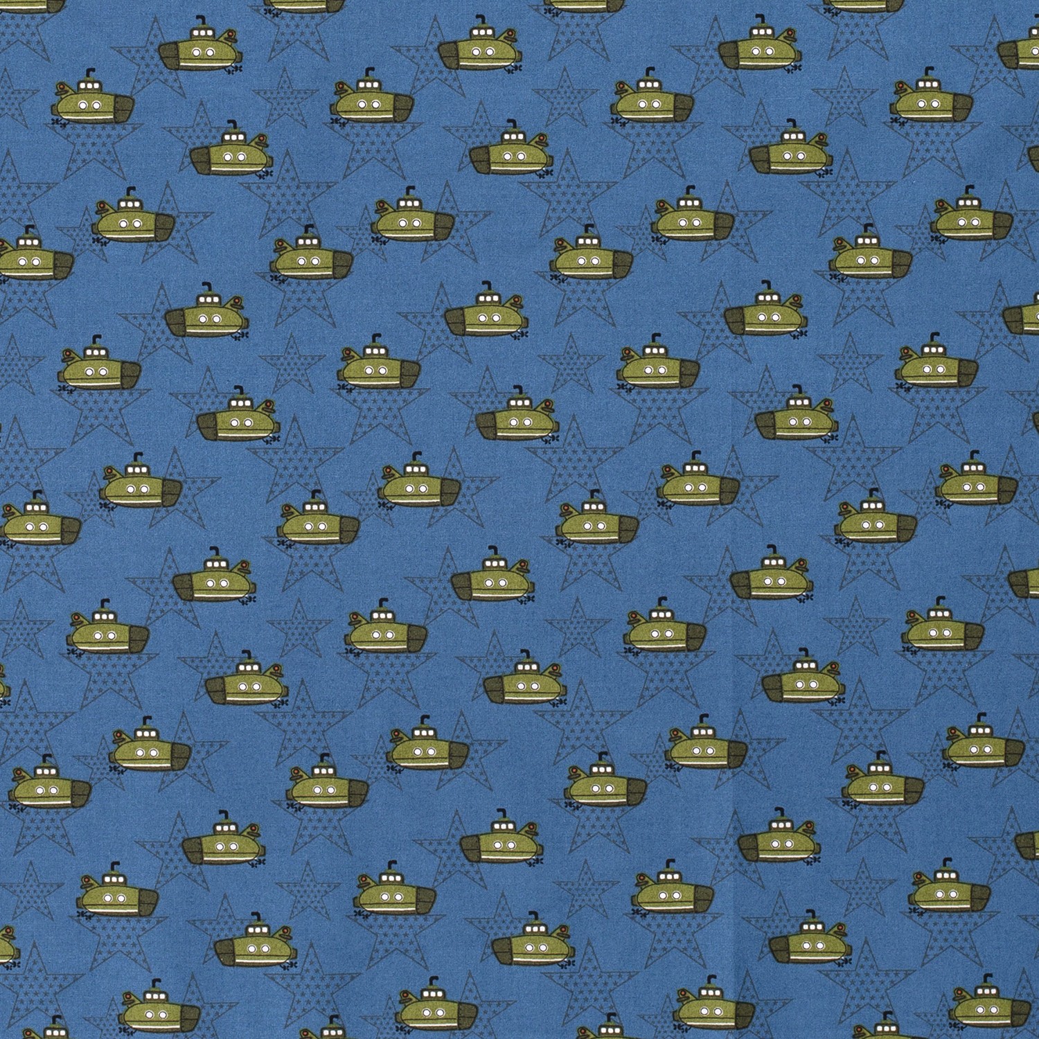 Coton Étoiles & Sous-marins sur Bleu Fumé