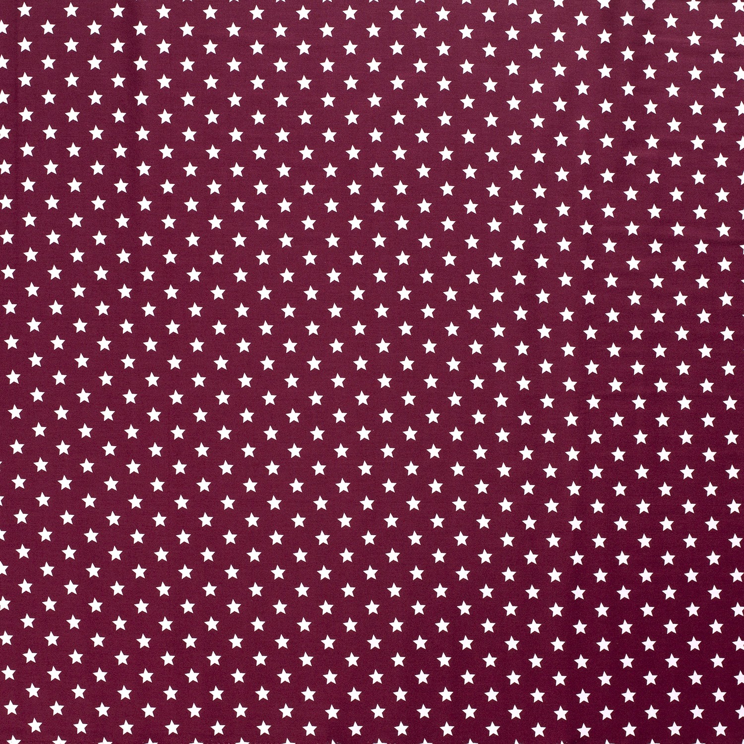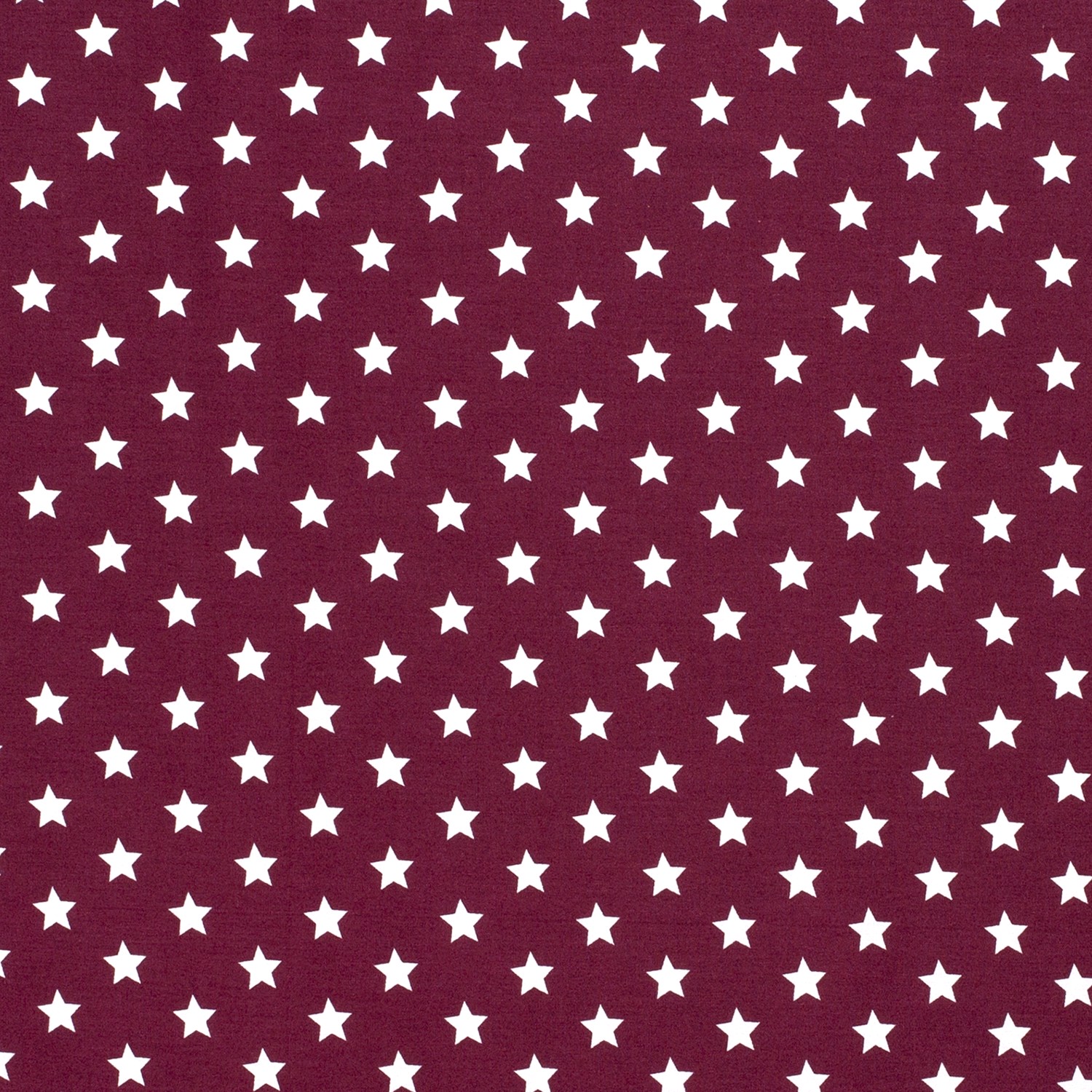 Un classique intemporel avec un éclat étoilé : Sur un rouge bordeaux profond brillent de petites étoiles uniformément réparties dans un ton crème clair. Le motif délicat est à la fois ludique et élégant – parfait pour ceux qui aiment les tissus discrètement imprimés tout en souhaitant une touche spéciale.