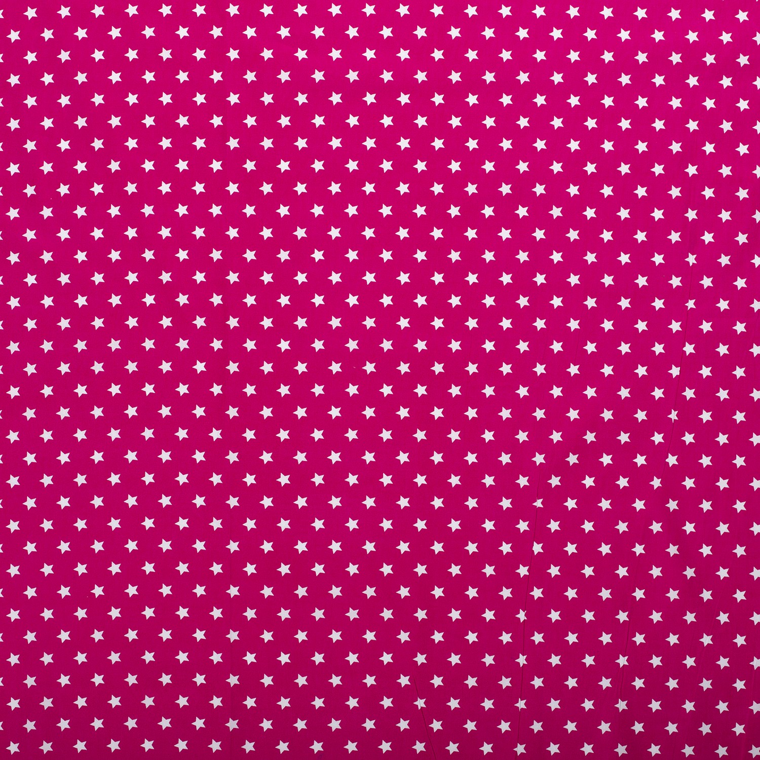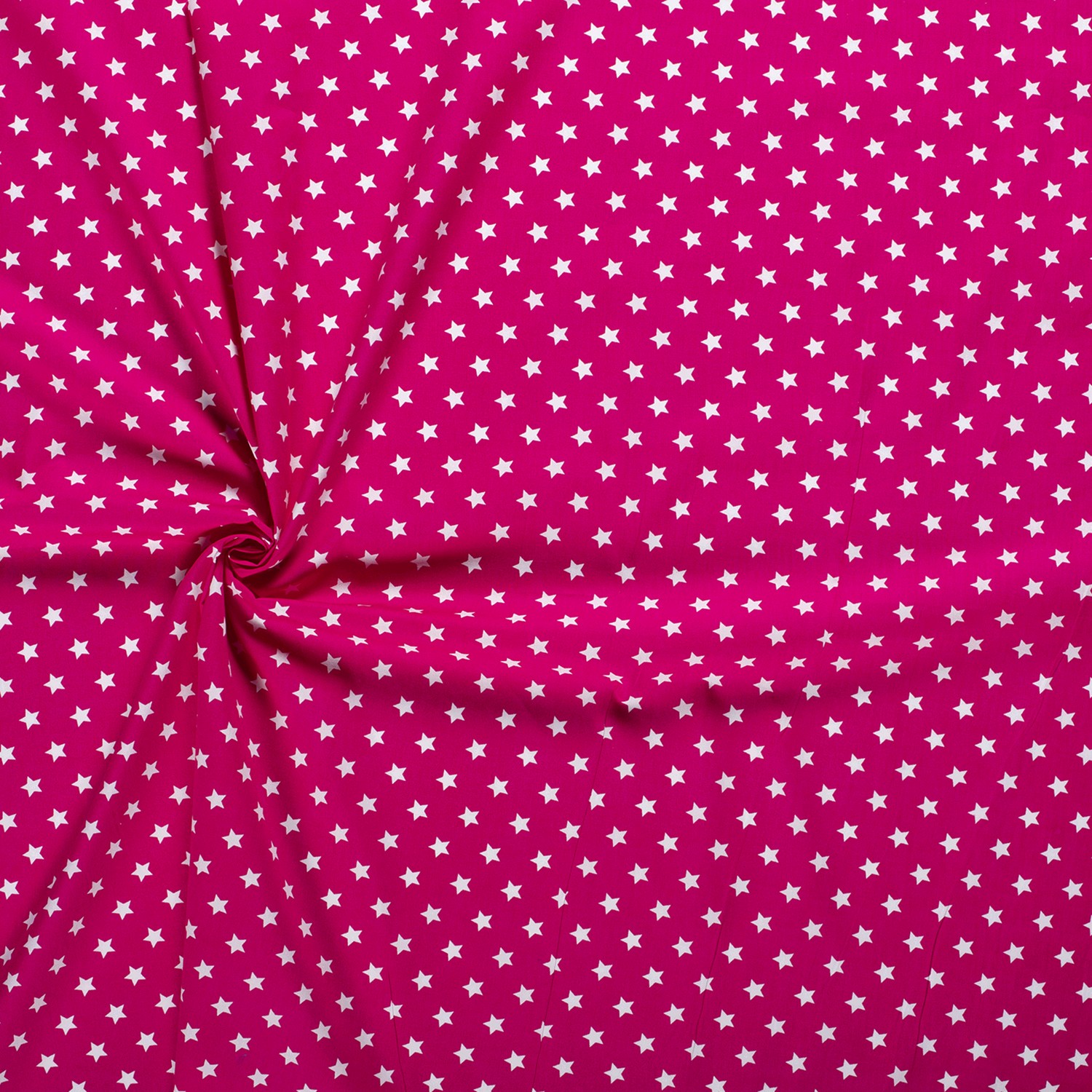 Un ciel étoilé enchanteur en rose : Sur ce tissu, de petites étoiles blanches régulières dansent sur un fond rose éclatant. Le design clair et frais est à la fois joyeux et moderne, apportant immédiatement une bonne humeur à votre atelier de couture.