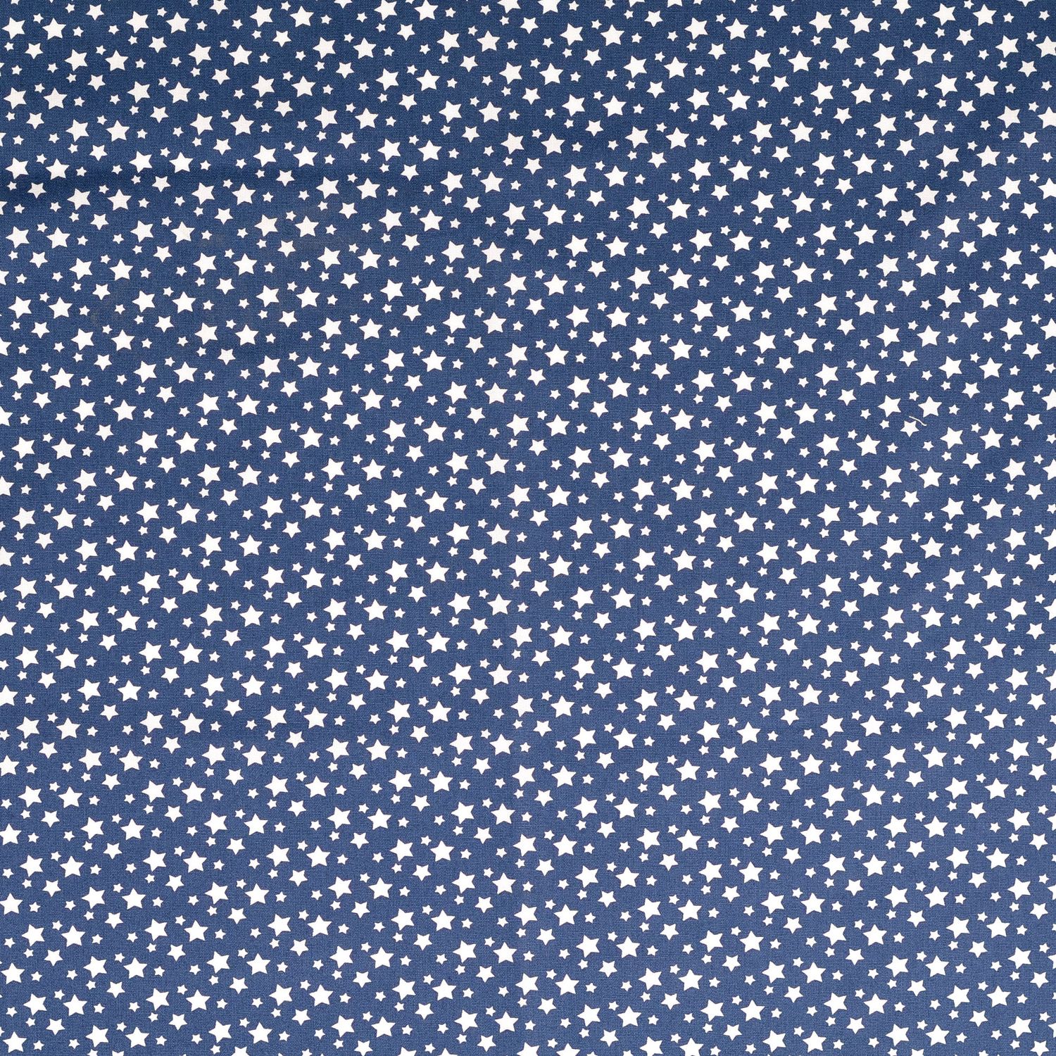 Un bleu marine profond et intense sert de toile de fond à ce tissu parsemé d’innombrables petites et grandes étoiles – comme un ciel nocturne clair rempli de points lumineux scintillants. Les fines petites étoiles en blanc délicat se répartissent uniformément sur toute la surface, offrant un look intemporel et joyeux qui ne se démode jamais.