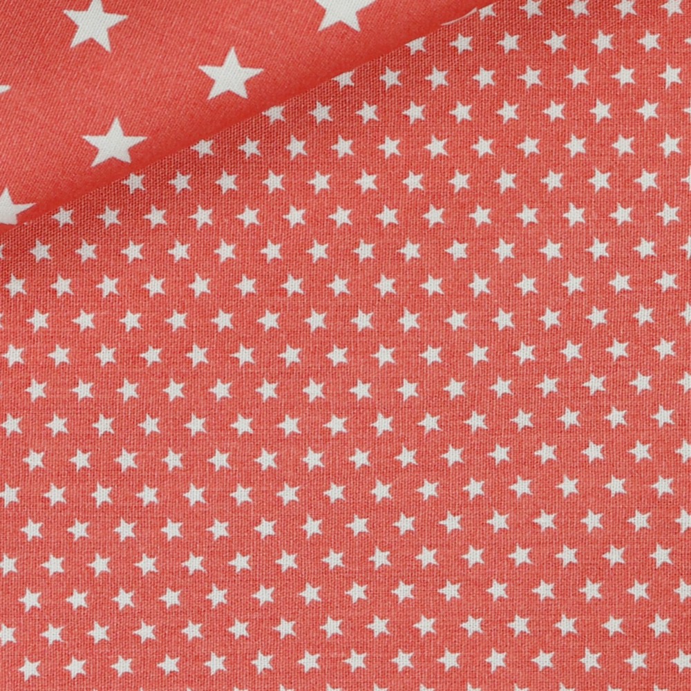 Un ciel étoilé délicat dans un ton corail chaud : Sur ce tissu dansent de minuscules étoiles uniformément réparties dans un crème/blanc clair sur un fond corail vif. Le dessin mini fin est à la fois moderne et intemporel – parfait si vous aimez les motifs discrets mais néanmoins particuliers.