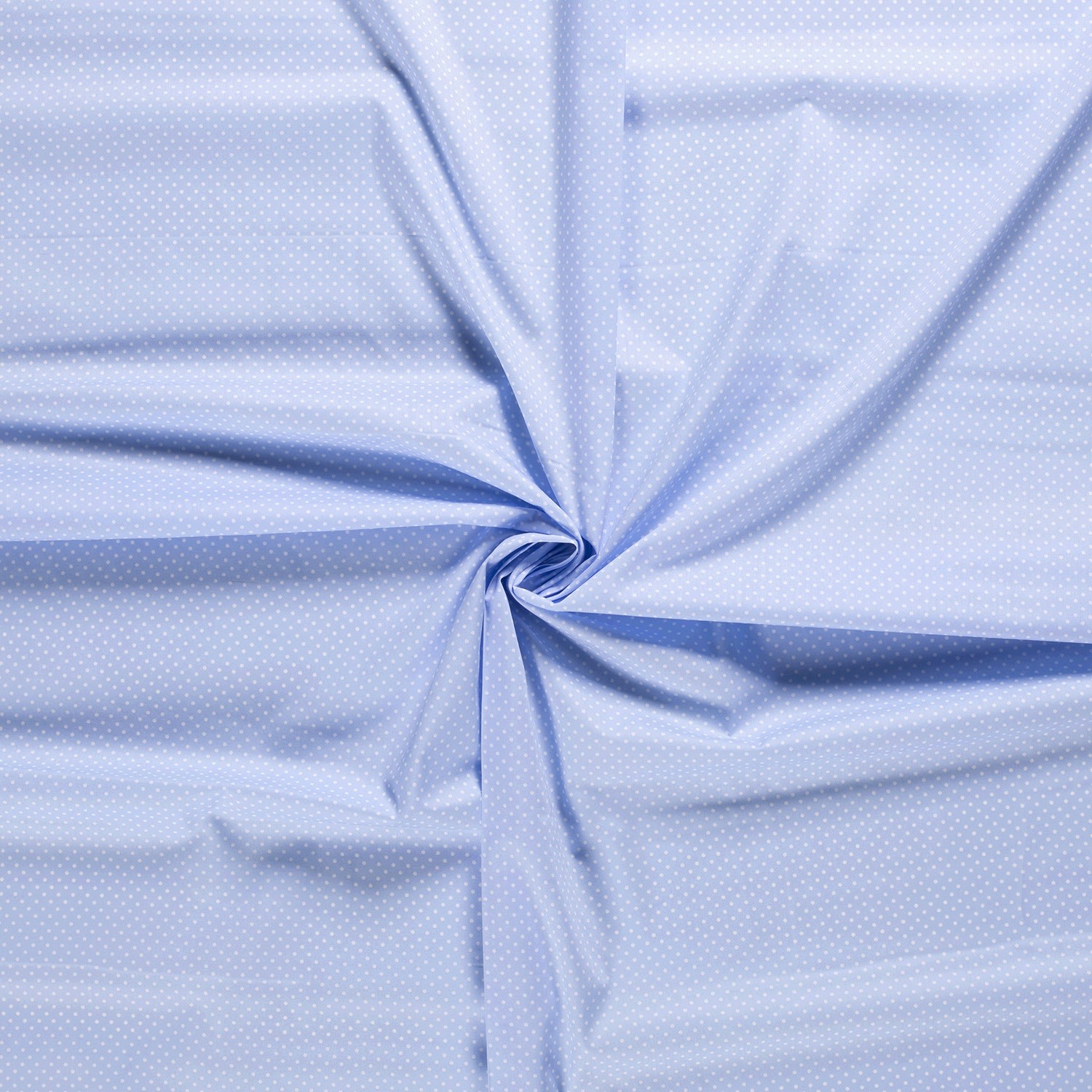 Un bleu clair délicat parsemé de minuscules pois blancs uniformément répartis – ce tissu dégage une fraîcheur et une légèreté intemporelles. Le motif mini pois fin est discrètement ludique sans être envahissant, et s’adapte parfaitement à des projets de couture modernes comme classiques.