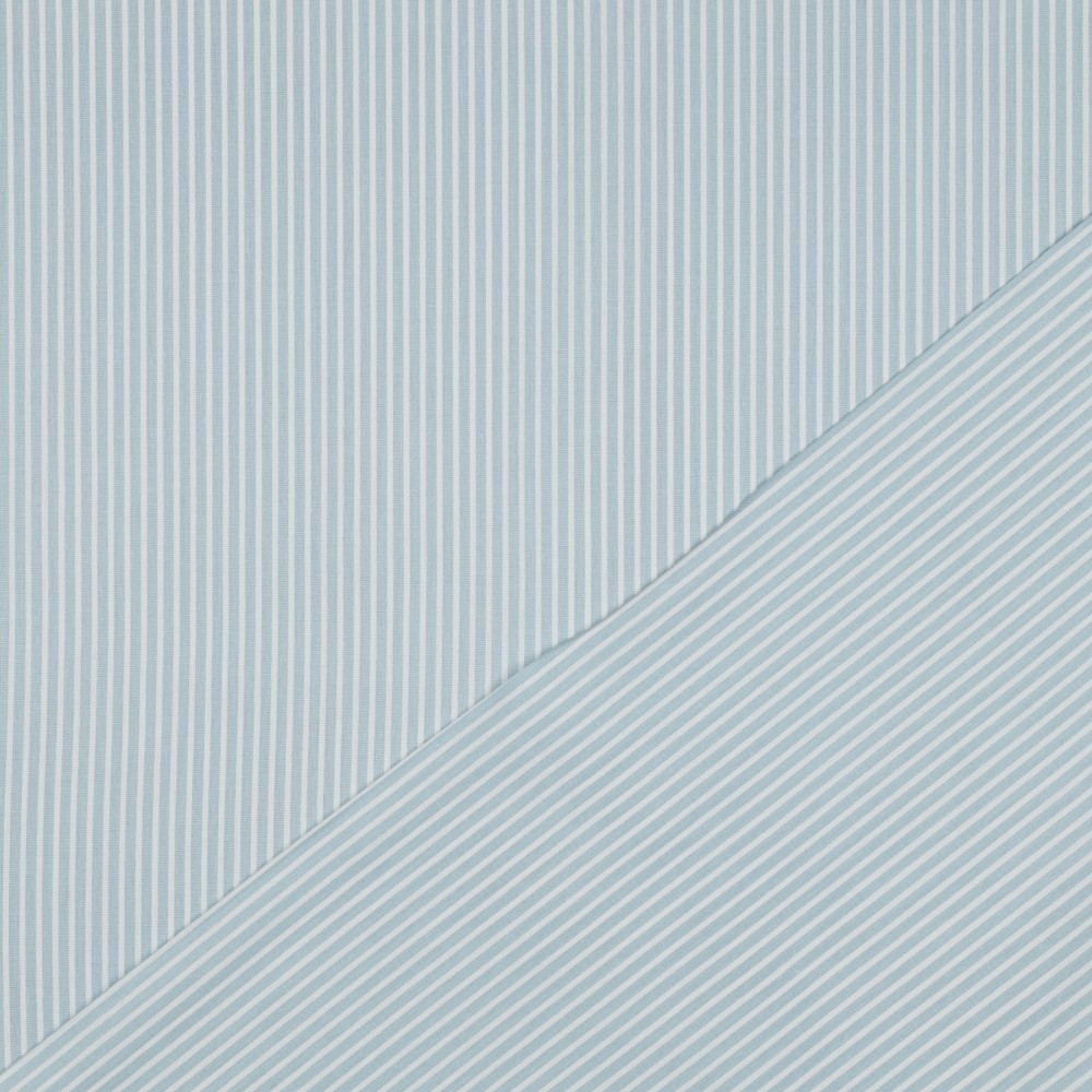 Délicates rayures bleu ciel sur fond blanc éclatant – ce tissu intemporel apporte immédiatement fraîcheur et légèreté à tous vos projets de couture. Les fines rayures régulières ont un aspect à la fois moderne et classique et se marient parfaitement avec des tissus unis ou d'autres motifs.