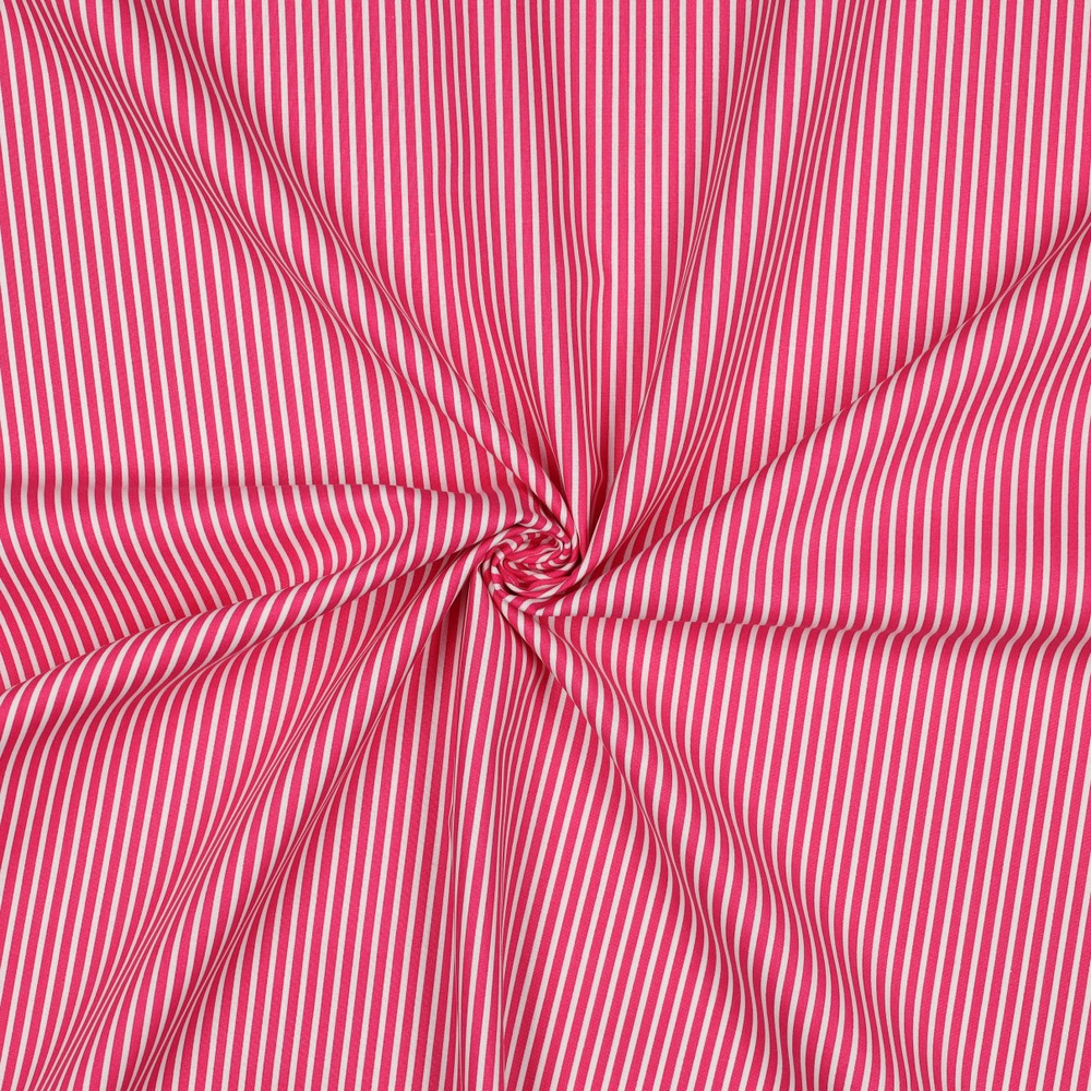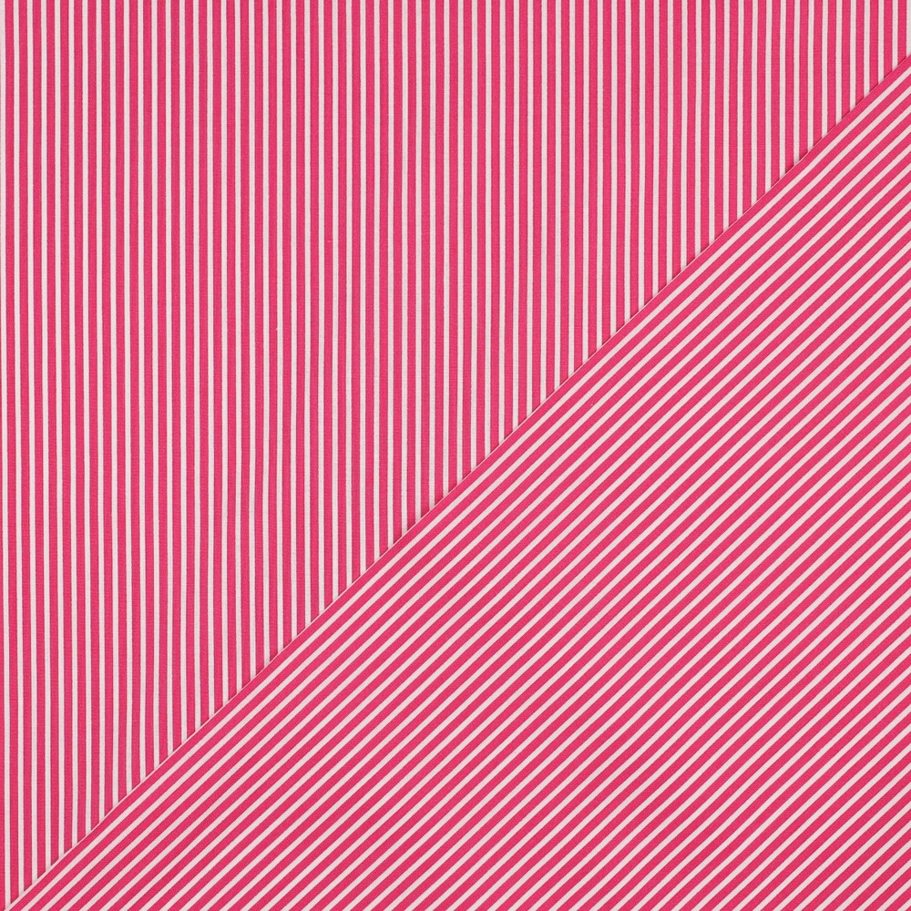 Des rayures délicates, des couleurs fraîches et un souffle d'été – ce tissu en coton aux nuances de rose et fuchsia apporte immédiatement une bonne humeur à tous vos projets de couture. Les fines rayures régulières donnent au design une apparence moderne et ludique, idéale pour les vêtements féminins, une décoration joyeuse et des projets faits main avec amour.