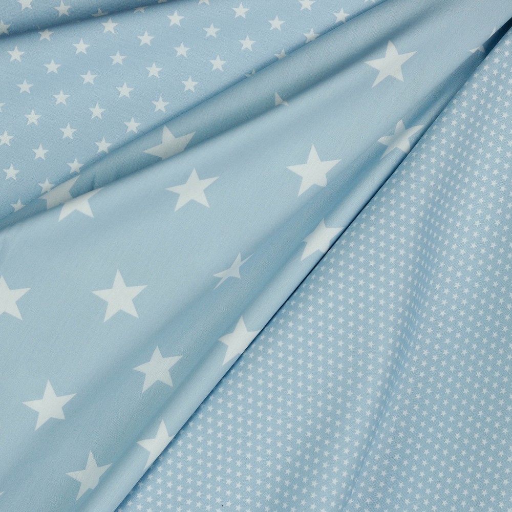 Un tissu comme dans un rêve d'enfant : un doux bleu bébé rencontre de grands motifs d'étoiles clairs, créant immédiatement une atmosphère affectueuse et accueillante. Les étoiles XL sont harmonieusement réparties sur le fond bleu clair, rendant le design moderne mais néanmoins intemporel – parfait pour tous ceux qui aiment les étoiles.