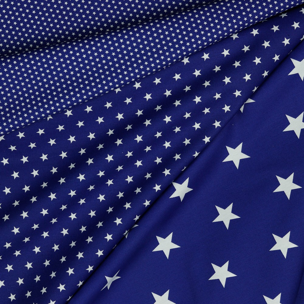 Éclatant comme un ciel nocturne clair : Sur un fond bleu royal intense, de grandes étoiles dessinées clairement brillent en blanc frais et lumineux. Le motif d’étoiles XL est à la fois moderne et joyeux – parfait pour apporter des accents forts.