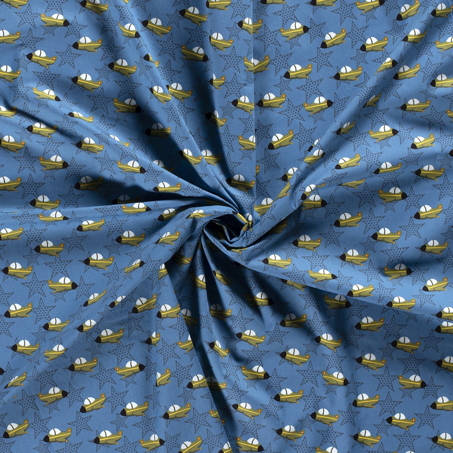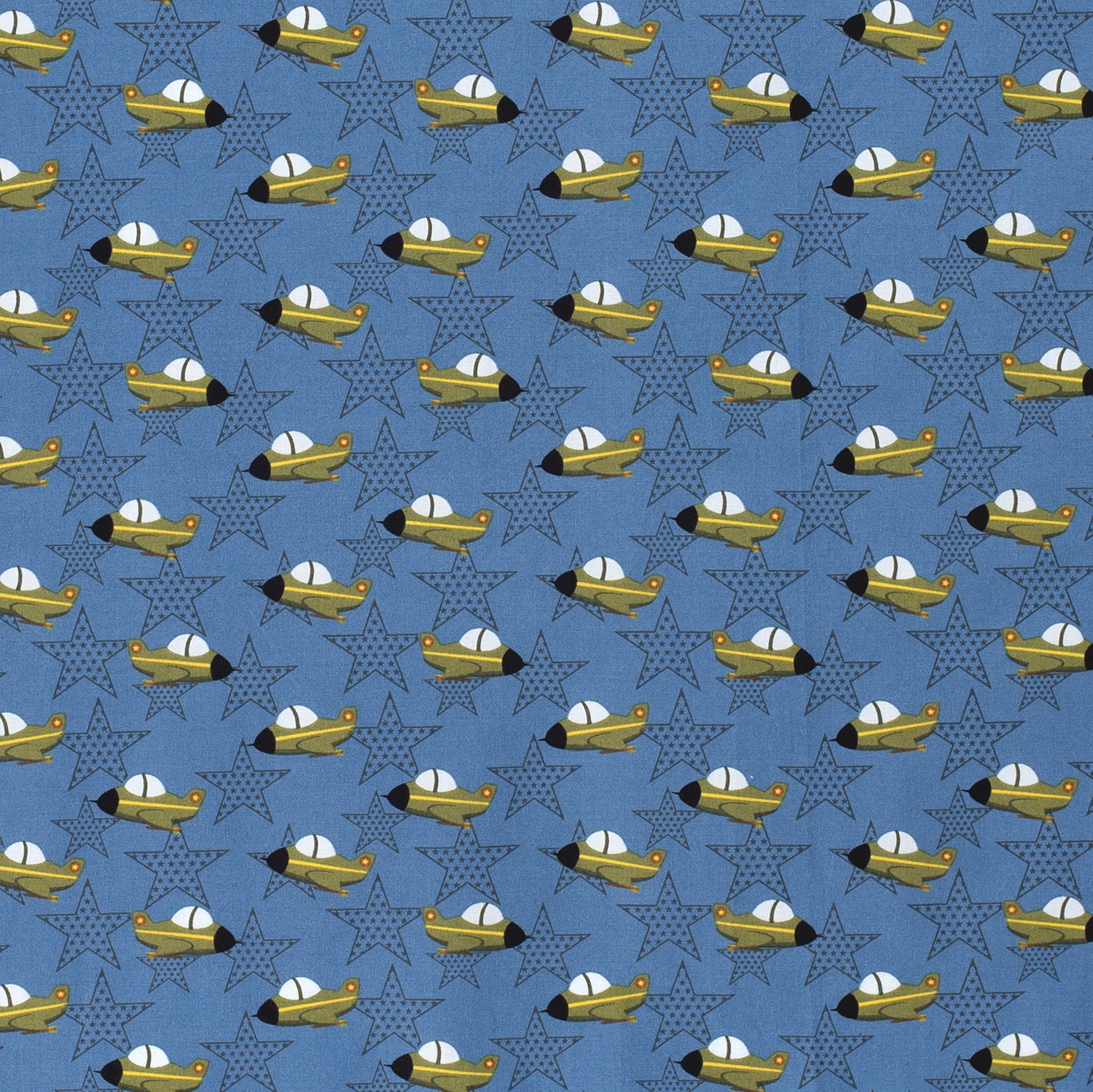 Coton Stars & Jets sur bleu fumé