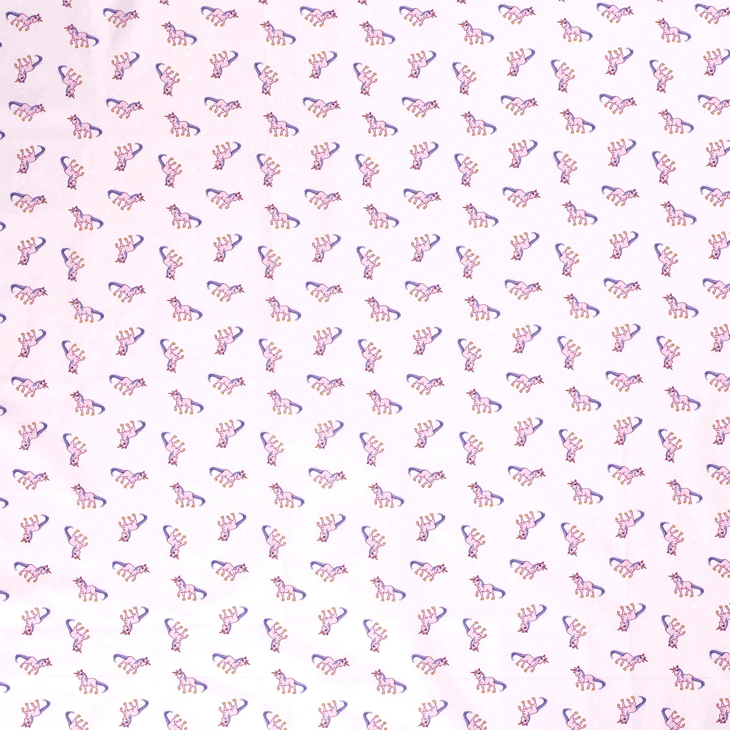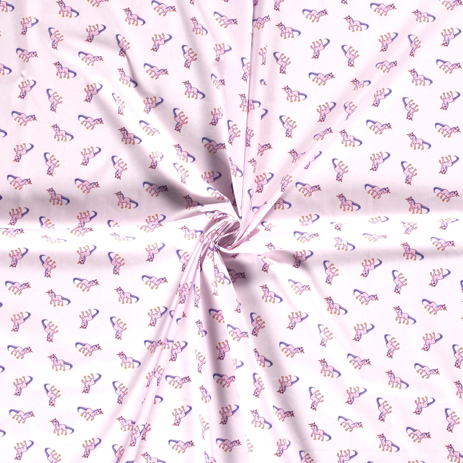 Un doux rose clair rencontre un monde magique de licornes : Sur ce tissu se promènent de mignons petits licornes, entourés de nombreuses étoiles fines dans des tons pastel harmonieusement assortis. Les licornes sont dessinées avec soin et ont un aspect ludique sans être surchargées – parfait pour ceux qui aiment un style féérique et élégant à la fois.
