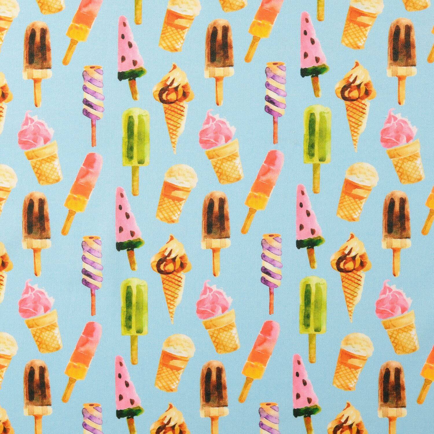 L'été à portée de main : Sur un fond bleu clair délicat s'ébattent des esquimaux multicolores dans de nombreuses couleurs gaies - de l'orange juteux au jaune ensoleillé en passant par des nuances crémeuses de rose et de marron. Les détails fins comme le glaçage, les paillettes et les petites ombres donnent aux motifs un aspect particulièrement vivant et créent immédiatement une ambiance de vacances.