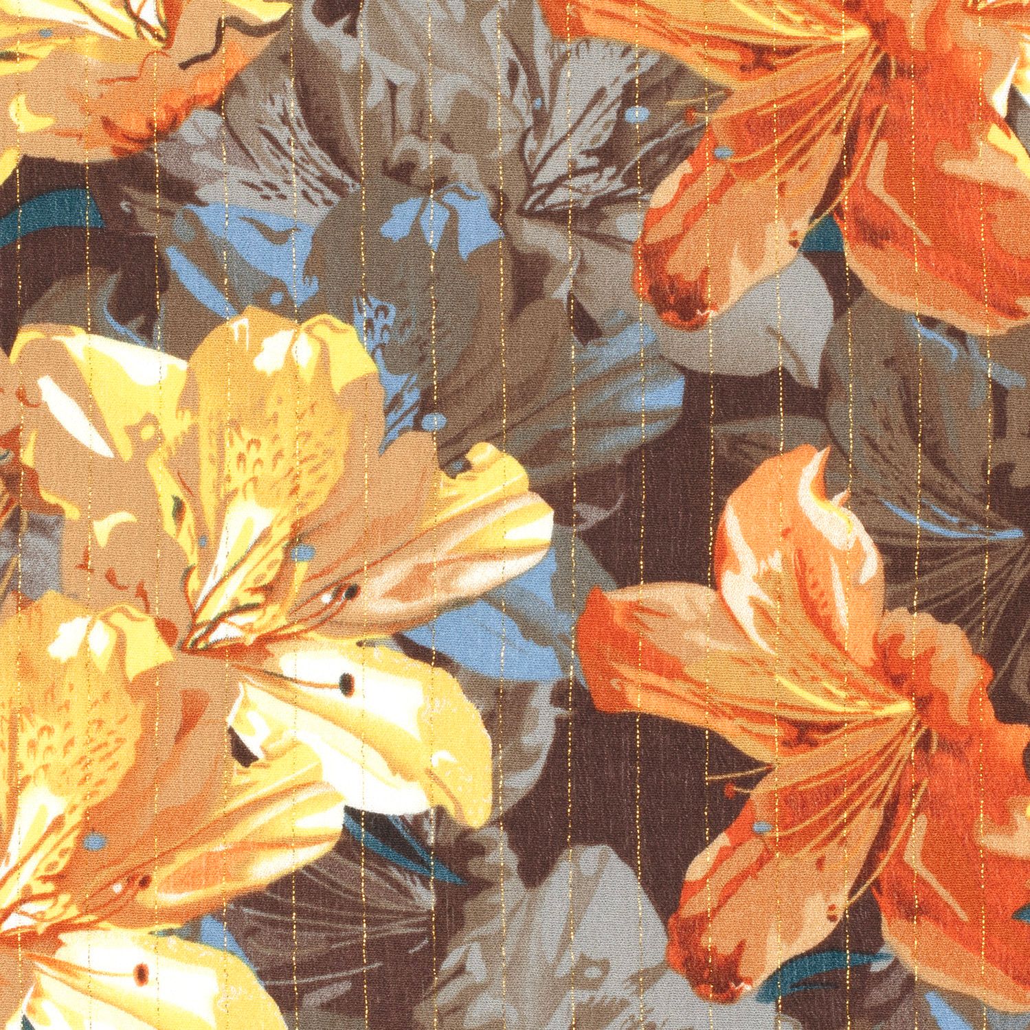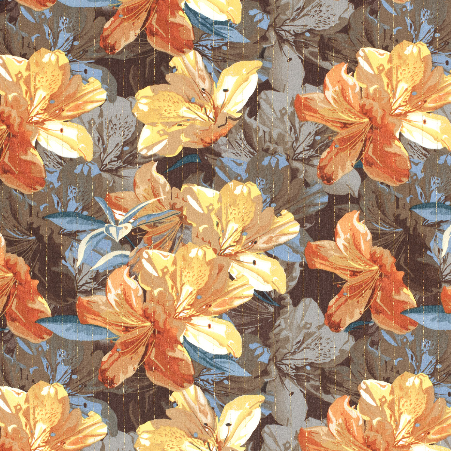 Une touche d'élégance avec un léger éclat : ce crêpe de viscose séduit avec un motif raffiné de lys sur un fond taupe apaisant. Les fleurs stylisées aux tons naturels doux semblent peintes et confèrent au tissu une allure féminine et moderne.