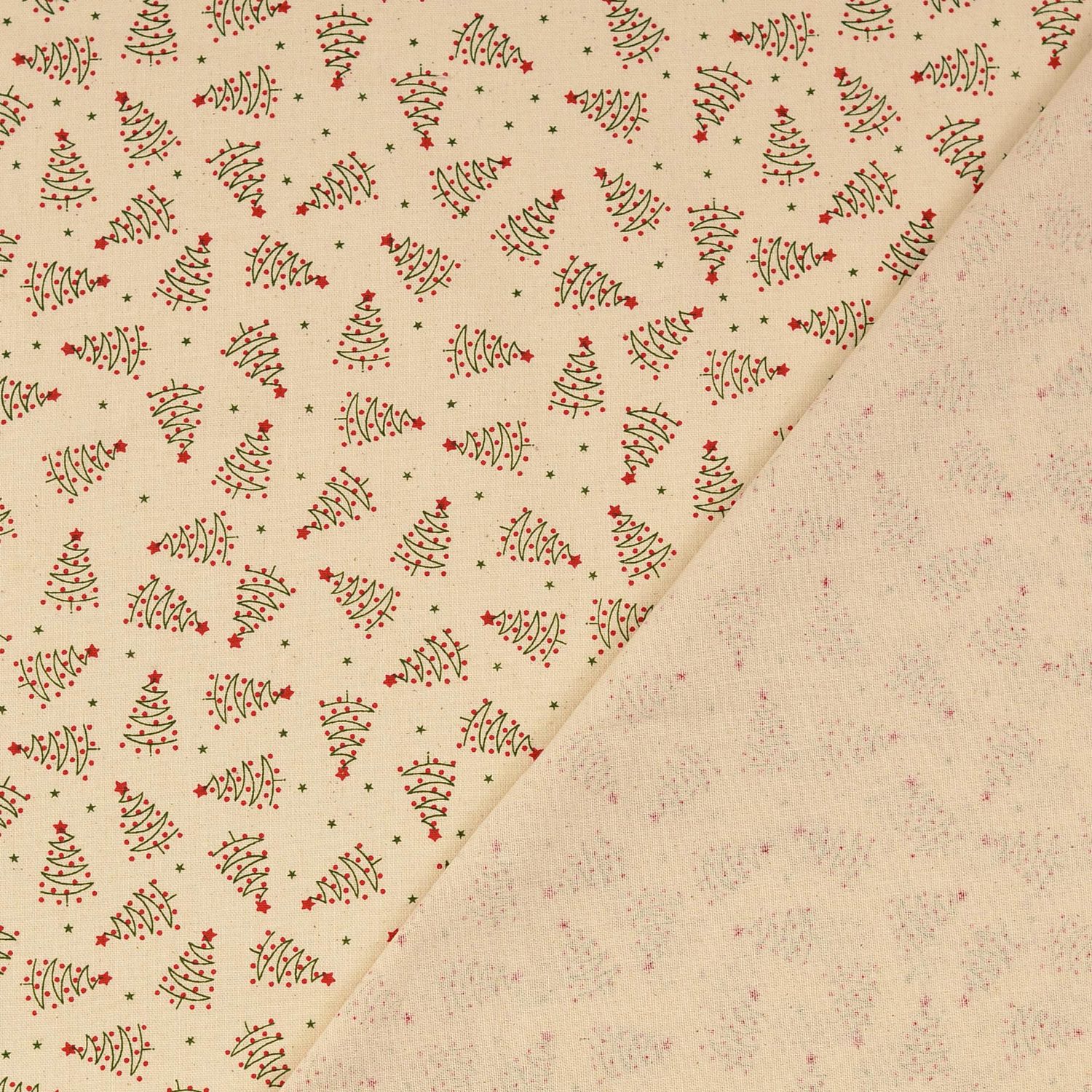 Cretonne en coton - Arbres de Noël Ecru