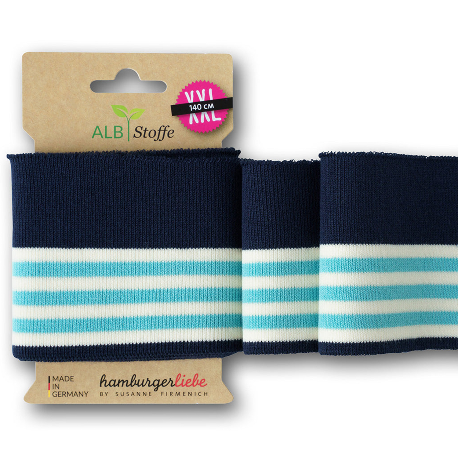 Avec Cuff Me College, tu apportes le véritable "look collège" à tes projets de couture. Les poignets jacquard sportifs se présentent dans des couleurs fraîches et claires et des motifs à rayures typiques : du bleu marine classique avec du blanc, en passant par le bleu royal vif, le jaune moutarde chaud et les tons rouille, jusqu'au turquoise moderne, au rose et aux pastels délicats, il y en a pour tous les styles. Les rayures contrastées apportent une touche cool et dynamique - parfait pour les tenues sportives ou les vêtements préférés qui aiment les détails. Les poignets sont déjà coupés, ont un bord bien travaillé et se travaillent en un tour de main - il suffit de les raccourcir à la longueur souhaitée, de les coudre et c'est fini. Idéal pour les manches, les ourlets, les bordures de pantalons, les cols ou les bonnets - partout où tu veux une finition professionnelle et stylée. Que ce soit pour des T-shirts, des sweat-shirts, des vestes, des vêtements pour enfants ou des accessoires, Cuff Me College donne en un clin d'œil à tes projets de couture un look moderne et de haute qualité - comme si tu les avais achetés, mais en beaucoup plus personnel.
