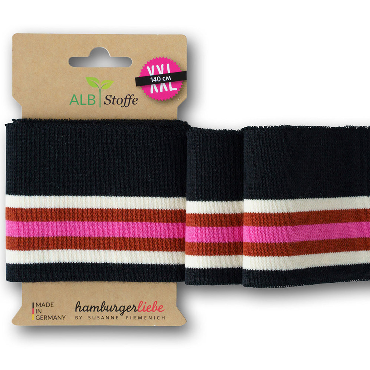 Avec Cuff Me College, tu apportes le véritable "look collège" à tes projets de couture. Les poignets jacquard sportifs se présentent dans des couleurs fraîches et claires et des motifs à rayures typiques : du bleu marine classique avec du blanc, en passant par le bleu royal vif, le jaune moutarde chaud et les tons rouille, jusqu'au turquoise moderne, au rose et aux pastels délicats, il y en a pour tous les styles. Les rayures contrastées apportent une touche cool et dynamique - parfait pour les tenues sportives ou les vêtements préférés qui aiment les détails. Les poignets sont déjà coupés, ont un bord bien travaillé et se travaillent en un tour de main - il suffit de les raccourcir à la longueur souhaitée, de les coudre et c'est fini. Idéal pour les manches, les ourlets, les bordures de pantalons, les cols ou les bonnets - partout où tu veux une finition professionnelle et stylée. Que ce soit pour des T-shirts, des sweat-shirts, des vestes, des vêtements pour enfants ou des accessoires, Cuff Me College donne en un clin d'œil à tes projets de couture un look moderne et de haute qualité - comme si tu les avais achetés, mais en beaucoup plus personnel.