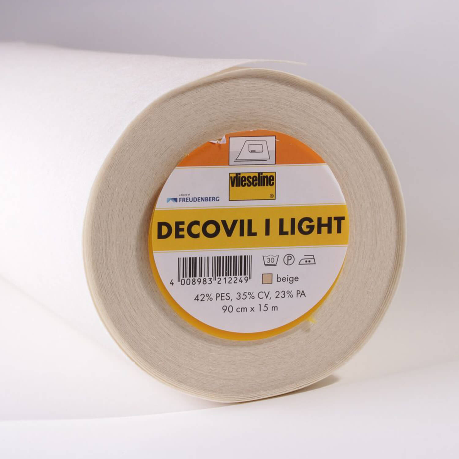 Decovil est un entoilage thermocollant dont le toucher rappelle un mélange de cuir et de caoutchouc. Le matériau est solide mais très flexible. Son grand avantage : il peut être repassé directement sur l'envers du tissu à renforcer et se lie durablement à lui. Le Decovil ne se déchire pas, mais se coupe d'autant mieux et se coud étonnamment facilement pour sa solidité. Decovil existe en deux épaisseurs - Decovil 1 Light est l'insert le plus léger des deux. Il a les mêmes propriétés, mais est beaucoup plus flexible. Alors que Decovil 1 est trop rigide pour être froissé dans la main, c'est le cas de Decovil 1 Light.