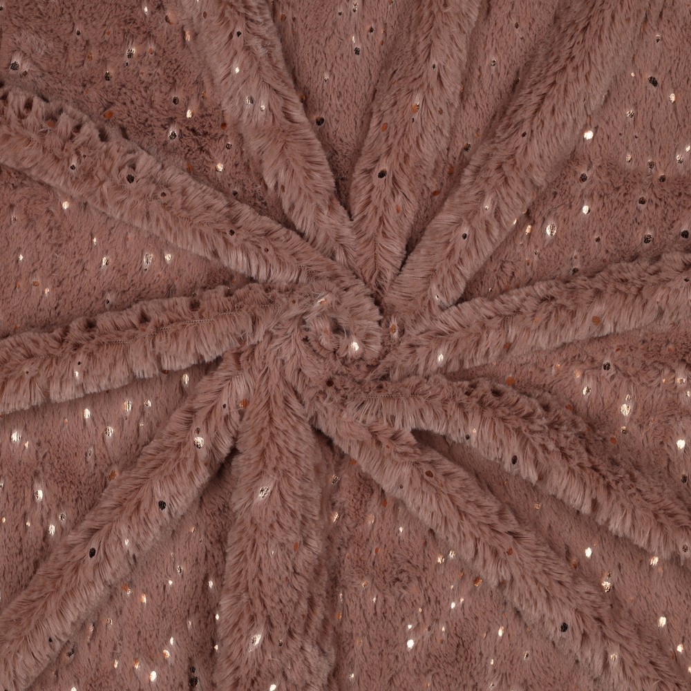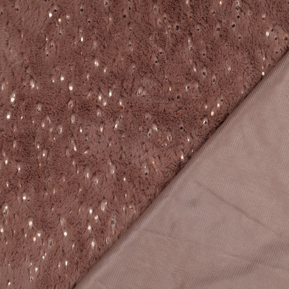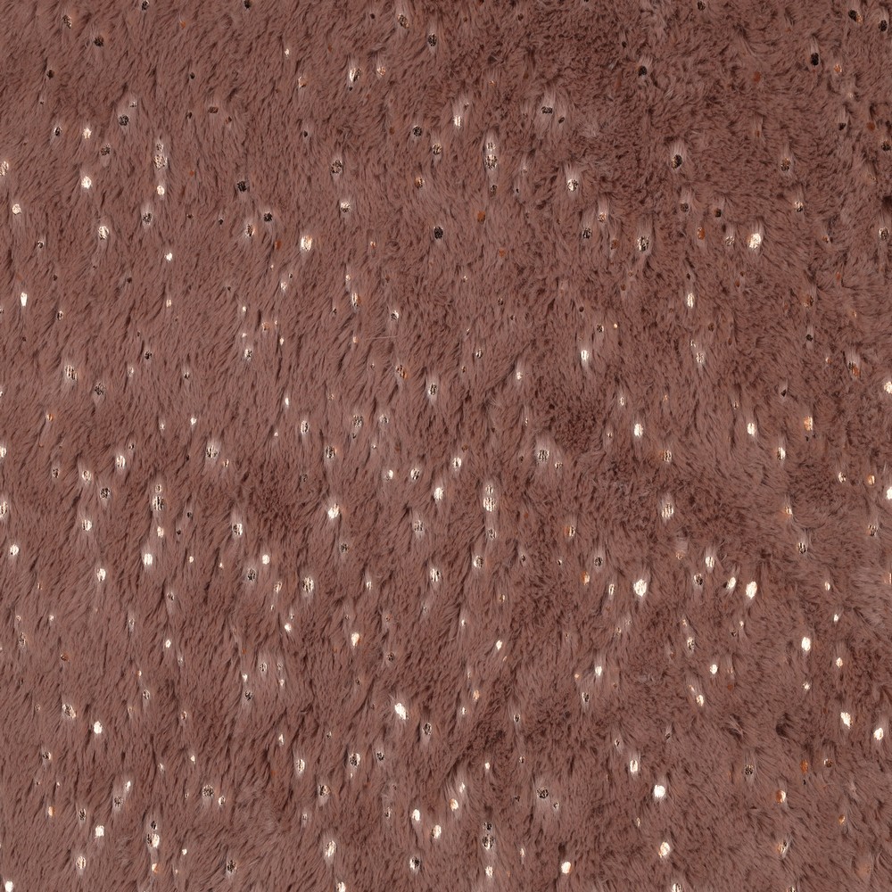 Cette fausse fourrure offre une sensation pure de glamour à travailler : sur un fond délicat rose ancien, de nombreux détails en pellicule bronze scintillent élégamment selon l'éclairage. La surface paraît douce, duveteuse et luxueuse – parfaite pour apporter une touche d'extravagance à tout projet de couture.