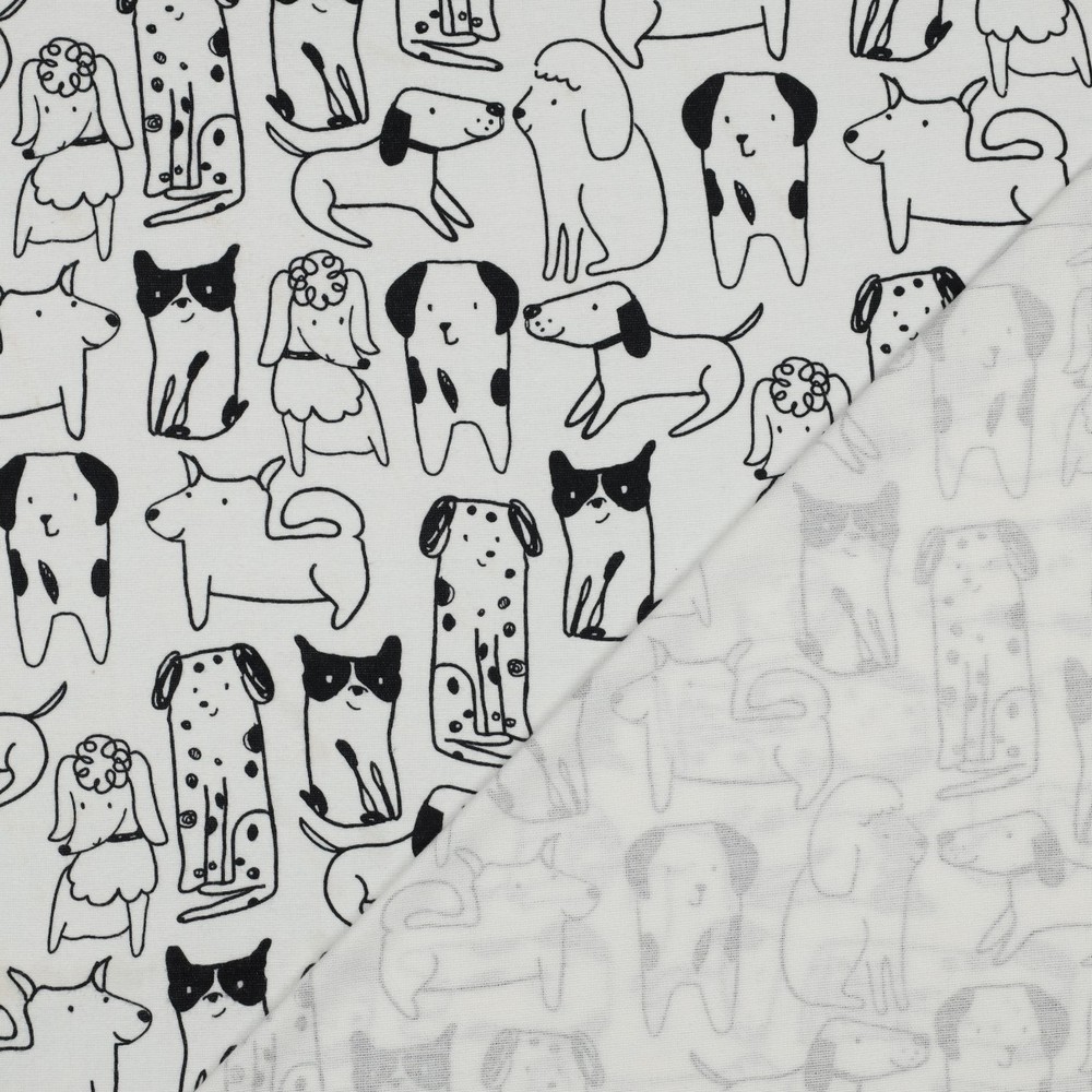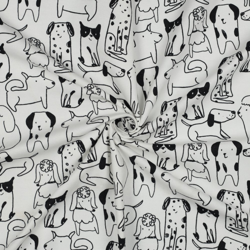 Un tissu à tomber amoureux - doux, moelleux et avec un motif qui fait battre le cœur de chacun. Sur le fond blanc éclatant s'ébattent de joyeux chiens dans différentes poses, illustrés avec amour et agrémentés de nombreux petits détails. Des couleurs discrètes dans des tons naturels chauds et des contrastes doux rendent le design sympathique et harmonieux sans être trop coloré.