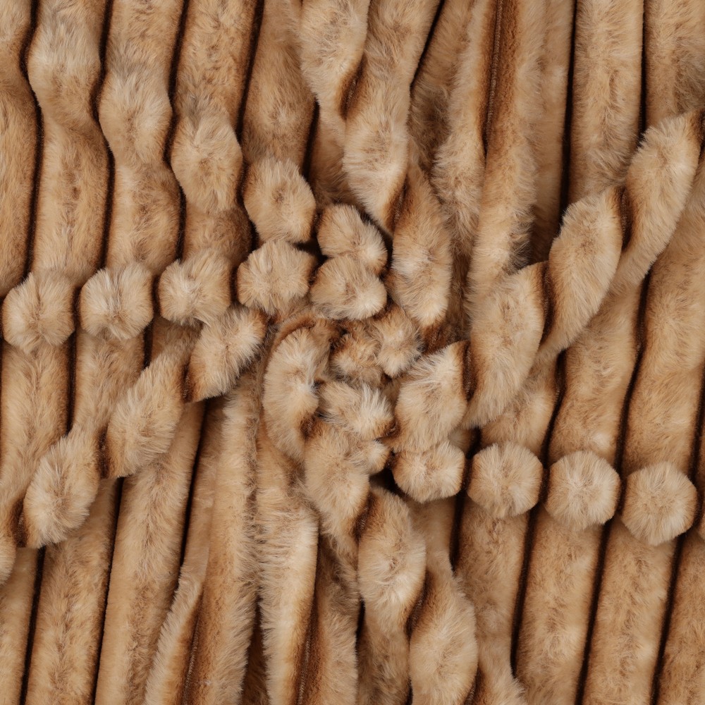 Cette fourrure synthétique apporte à chaque projet de couture un look luxueux et tendance : un motif rayé mélangé en tons chauds de brun et beige couvre la surface, rendant la fourrure particulièrement vivante et naturelle. Les fines nuances de couleur, allant du beige clair au brun chocolat profond, créent un aspect noble et harmonieux qui se combine facilement.
