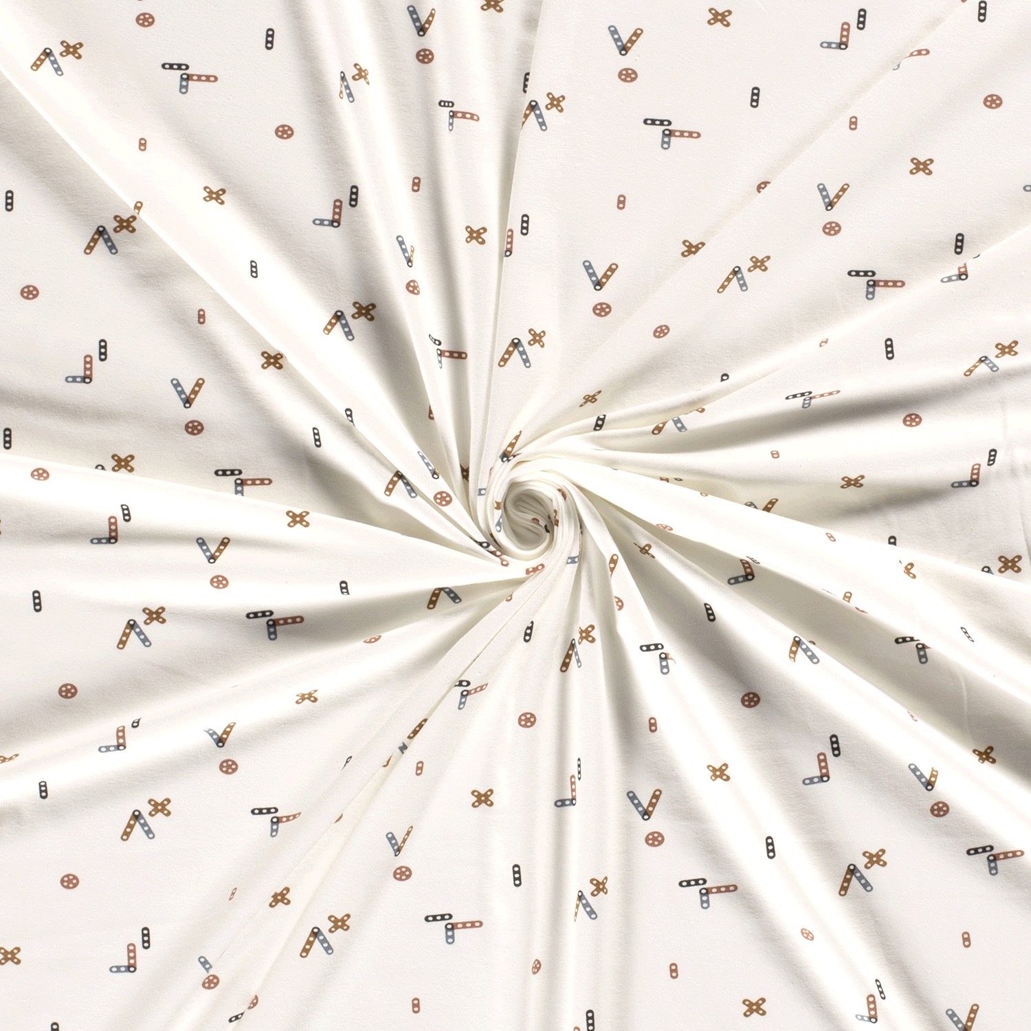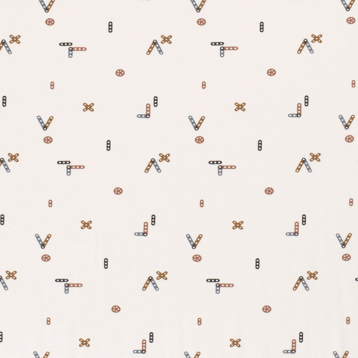 Ce jersey joyeux apporte une véritable ambiance de salle de jeux à vos projets de couture : sur un délicat blanc crème, de petits blocs colorés en rouge, jaune, bleu, vert et d'autres couleurs fraîches s'animent – tels des cubes soigneusement dispersés sur un tapis clair. Le motif finement dessiné est vivant, sans être trop criard, et se marie à merveille.