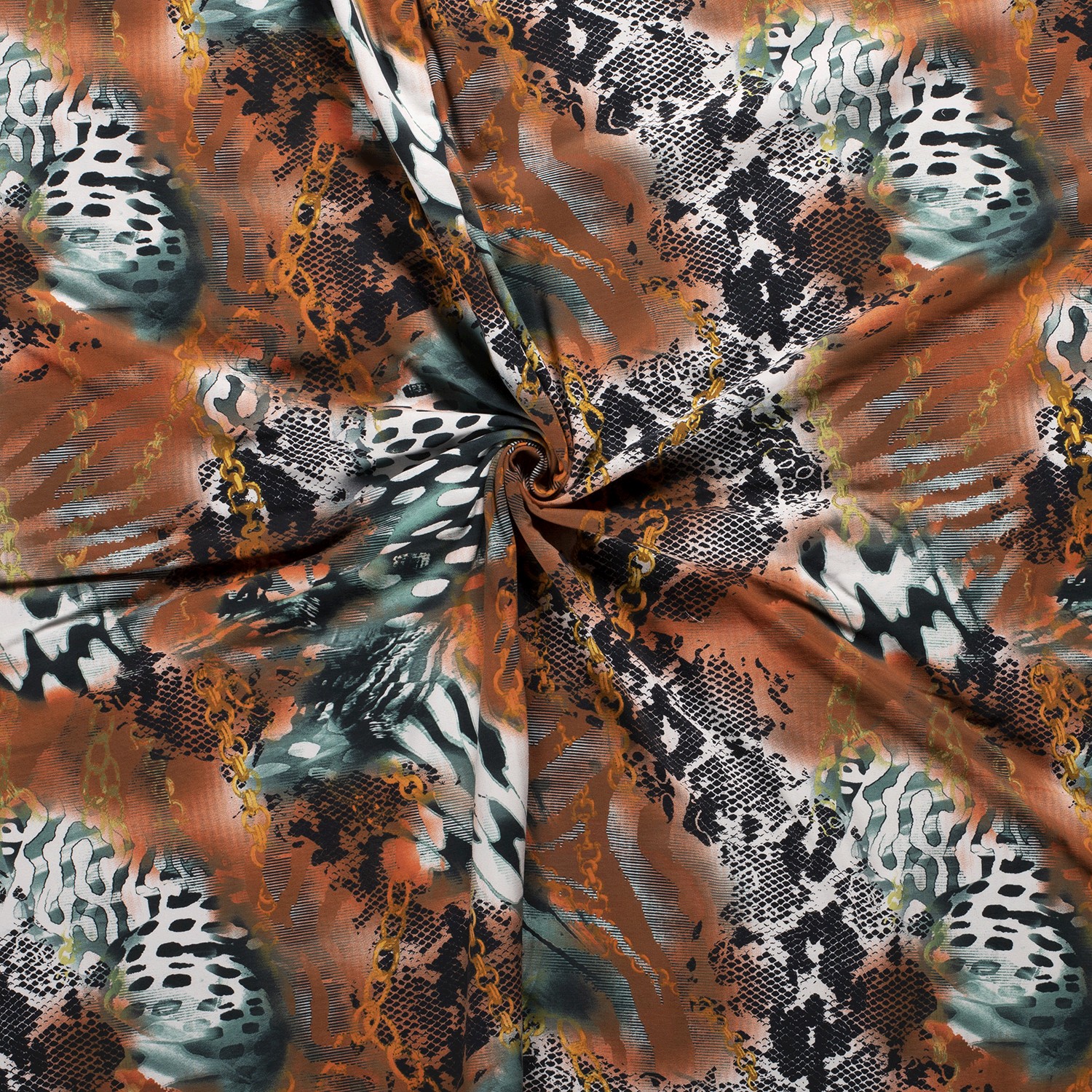 Ce jersey saisissant attire tous les regards : sur un orange sanguine vif et intense se déploie un motif abstrait de serpent et chaîne sur le tissu. Des lignes fines, des formes courbes et un look rétro moderne fusionnent en un motif extravagant à la fois stylé et parfaitement adapté au quotidien.