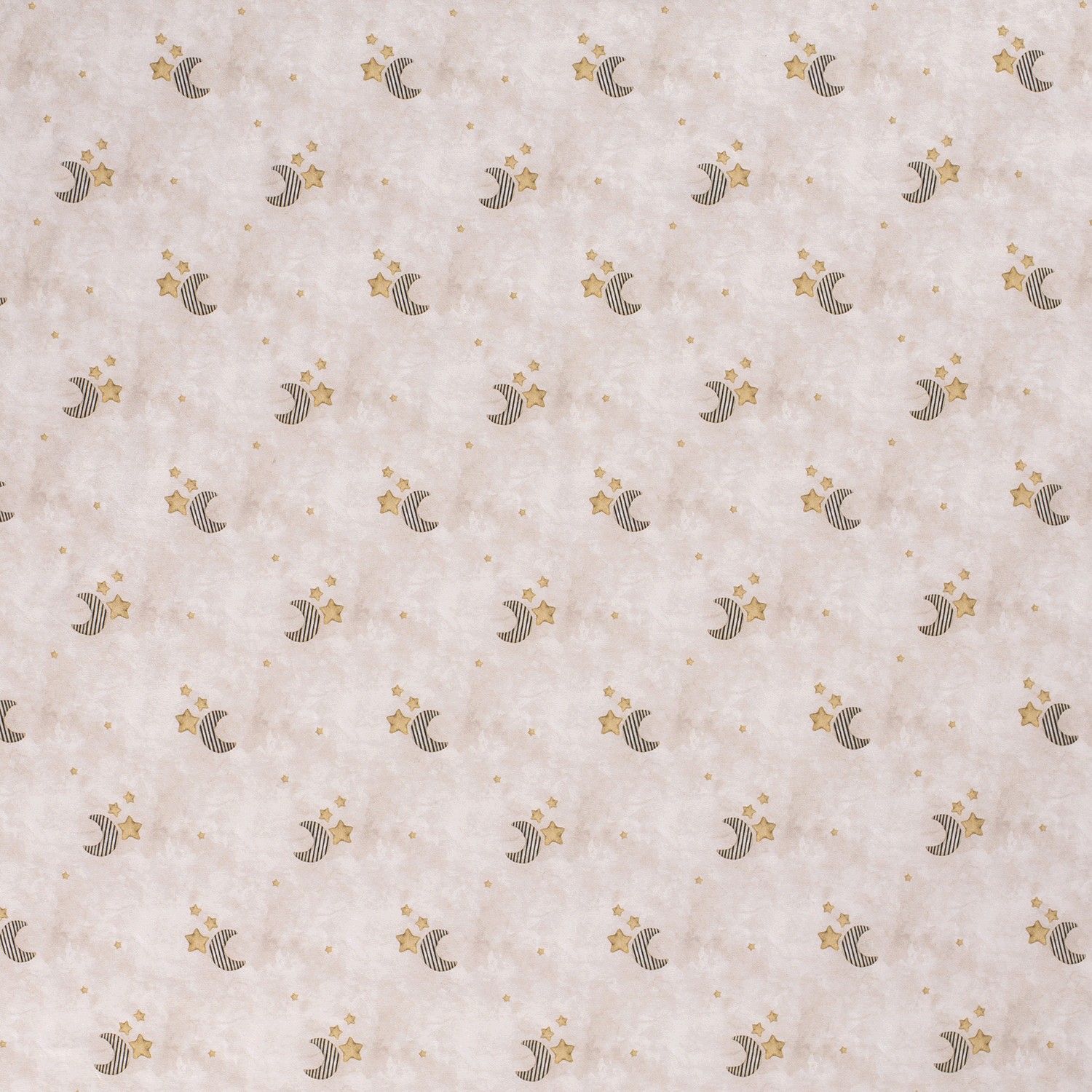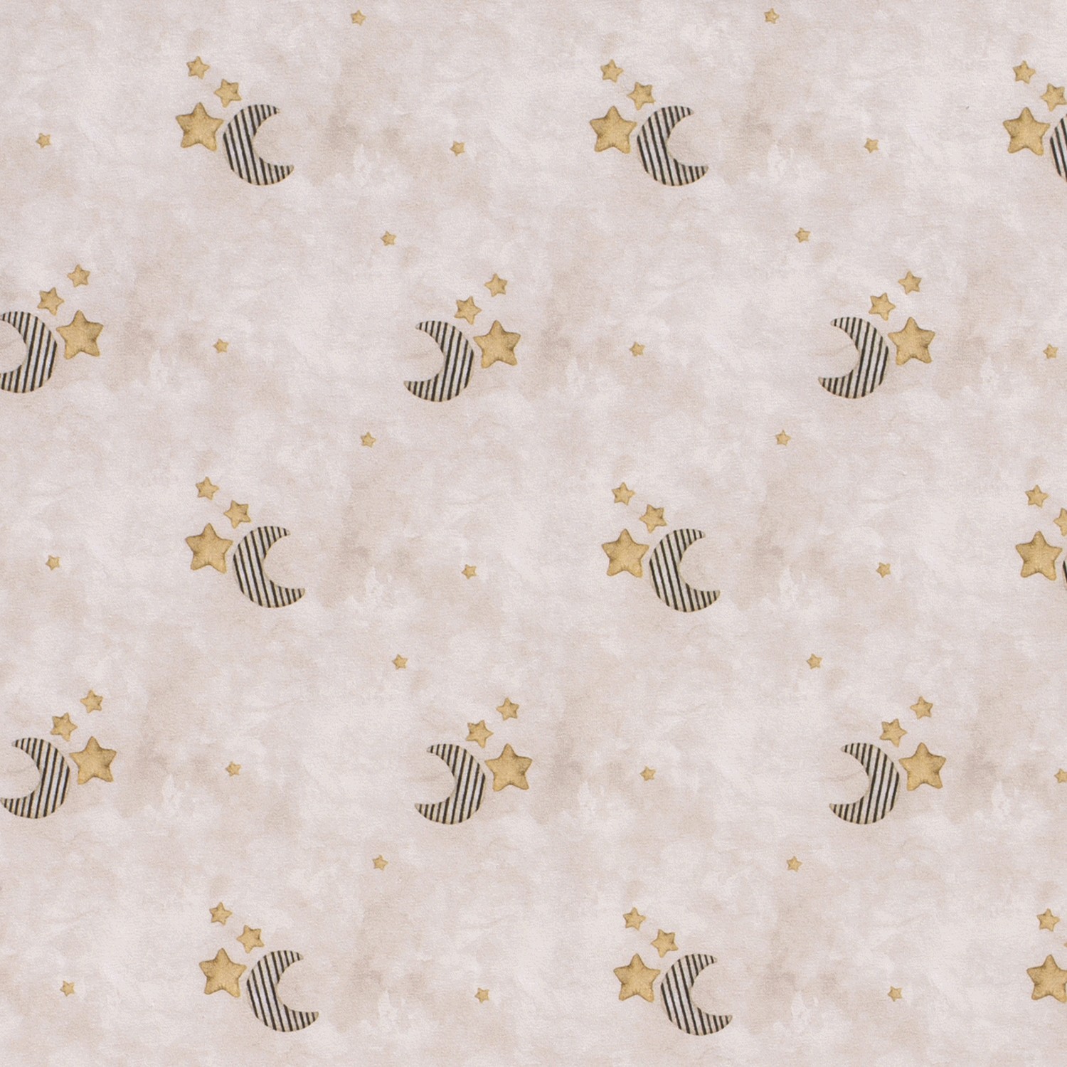 Un ciel nocturne délicat pour vos projets de couture : sur un beige clair et chaud flottent de fines croissants de lune et de petites étoiles dans des tons doux naturels et gris. Le design discret mais ludique est apaisant et harmonieux – parfait pour ceux qui aiment la simplicité avec une touche d'originalité.