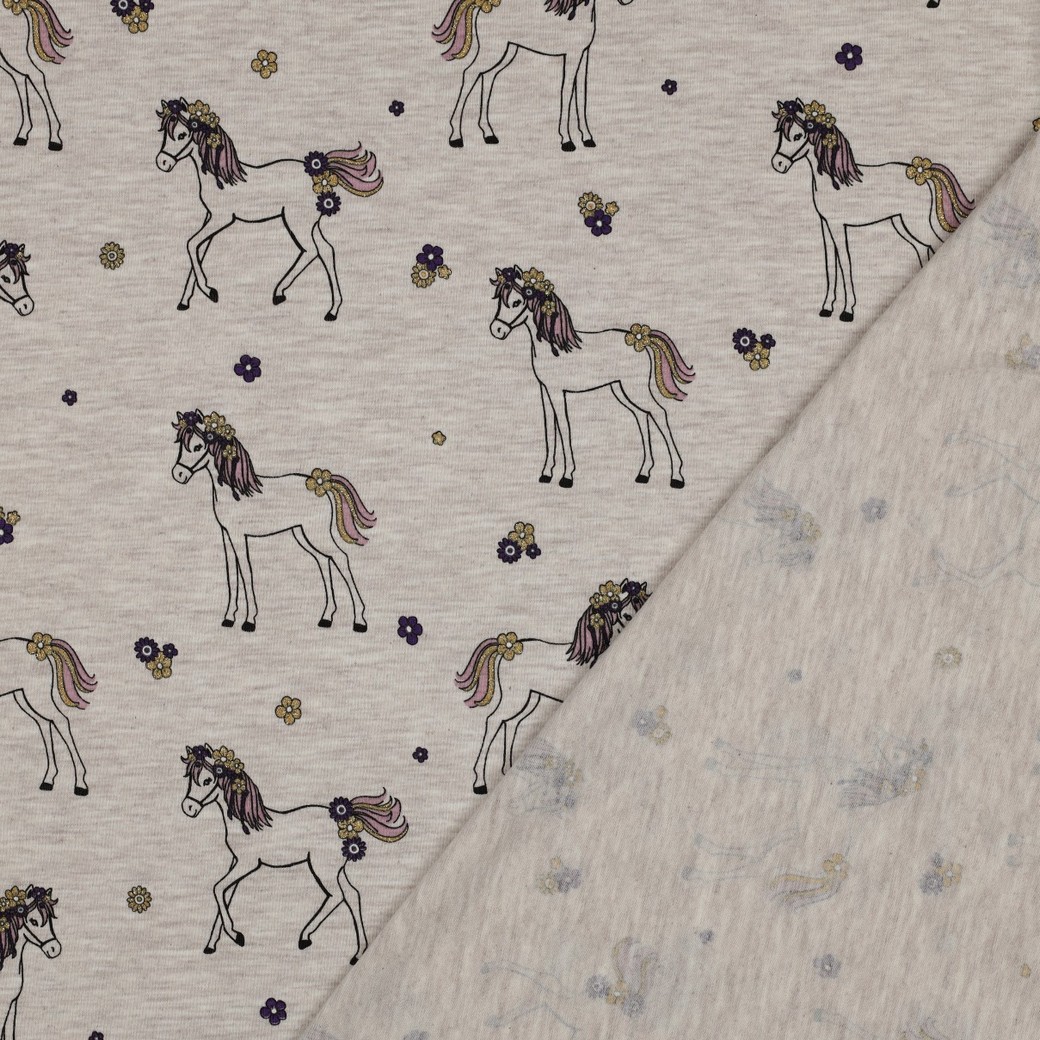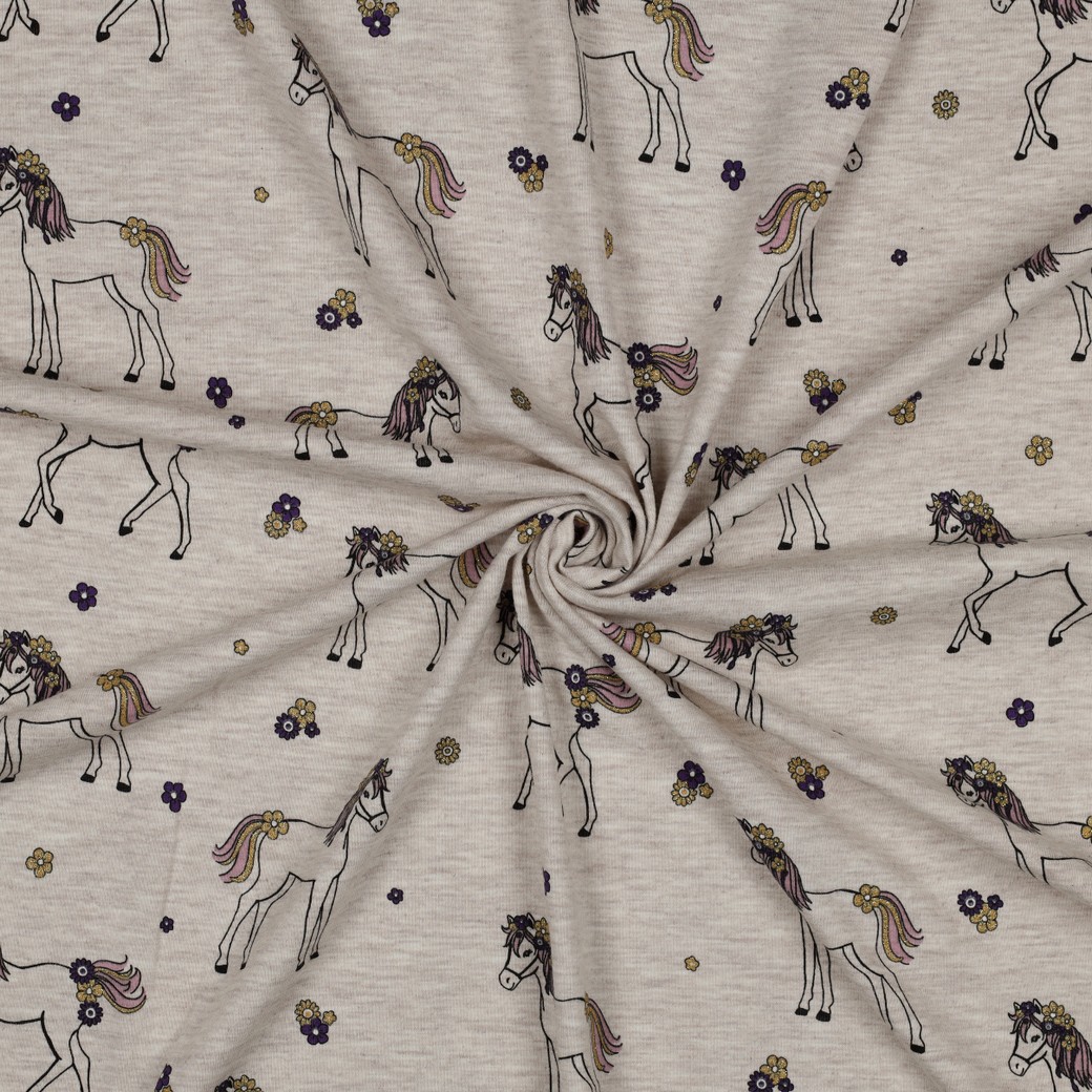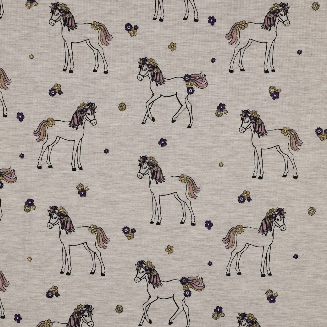 Jersey de coton - Chevaux pailletés écru chiné