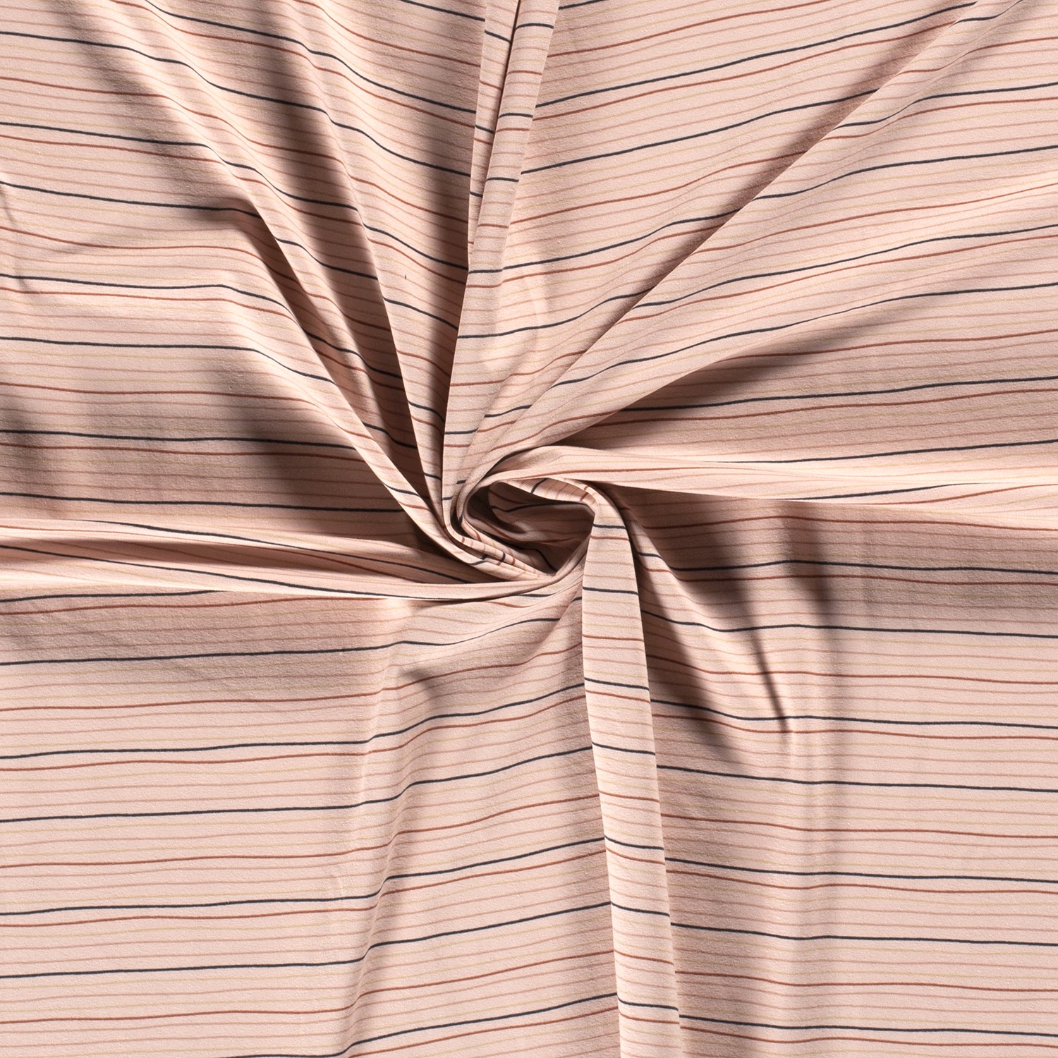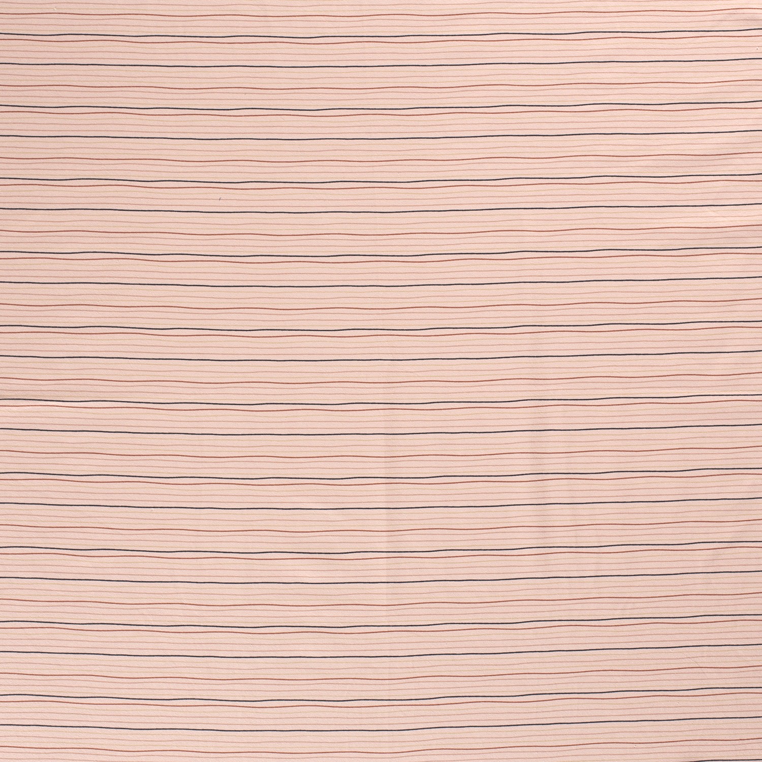 Une élégance délicate rencontre un design ludique : Sur un fond doux vieux rose, de fines lignes sombres serpentent en ondulations légères sur le tissu. Les lignes ondulées irrégulières évoquent des croquis réalisés à la main et confèrent au jersey un aspect moderne tout en étant très harmonieux – parfait pour ceux qui aiment les rayures mais cherchent quelque chose d'unique.