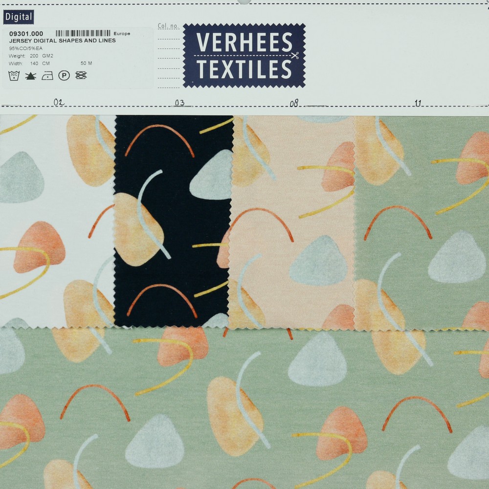 Jersey - Impression numérique formes et rayures menthe