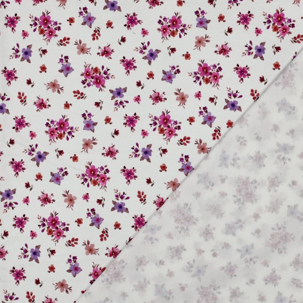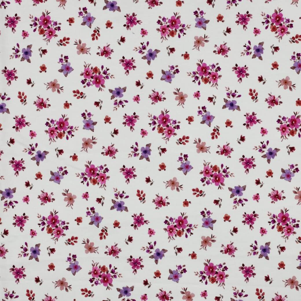 Jersey - Impression numérique Petites fleurs Ecru Fuchsia