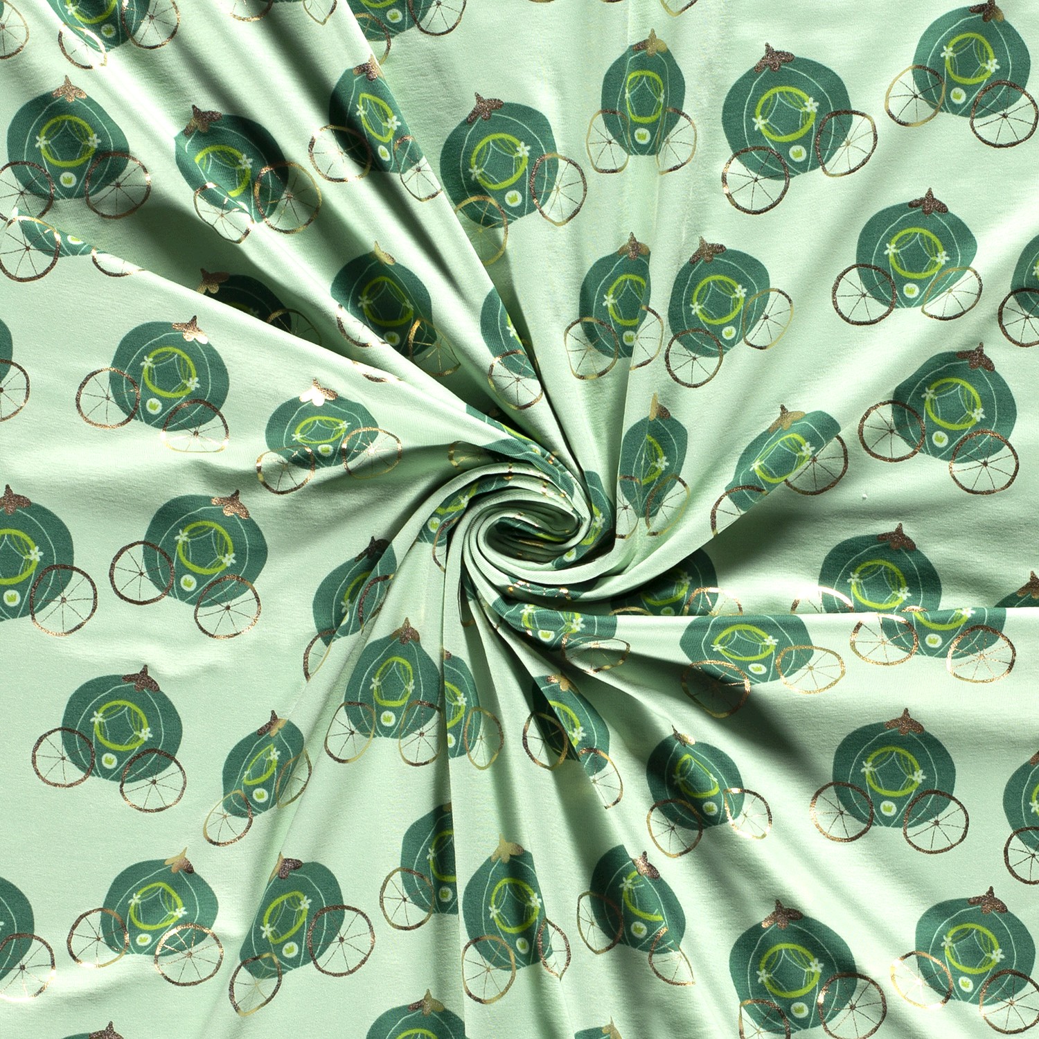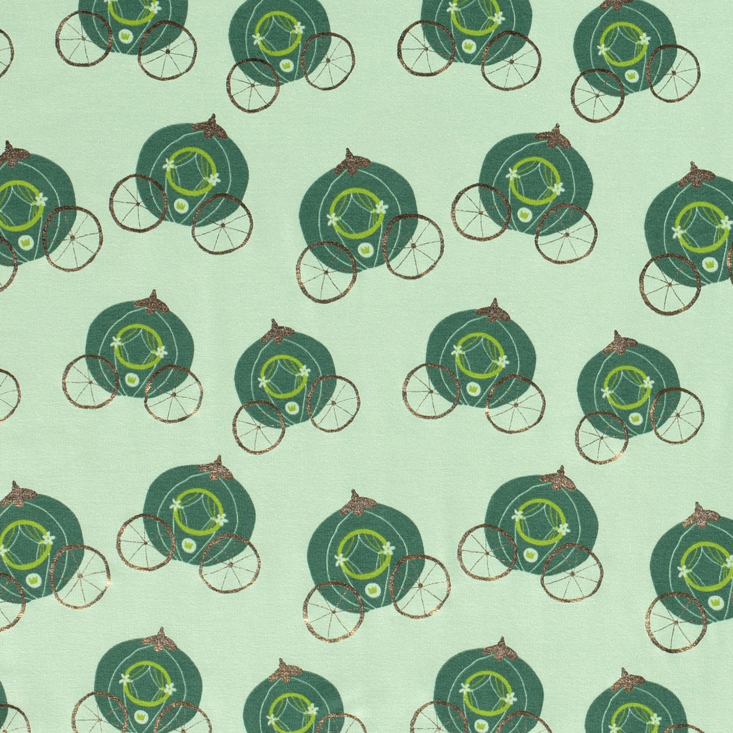 Une touche de conte de fées pour vos projets de couture : sur un doux menthe, de nobles carrosses dorés scintillent comme dans une histoire de princesse. La fine impression foil confère au tissu un éclat élégant qui scintille discrètement selon la lumière, sans être envahissant.