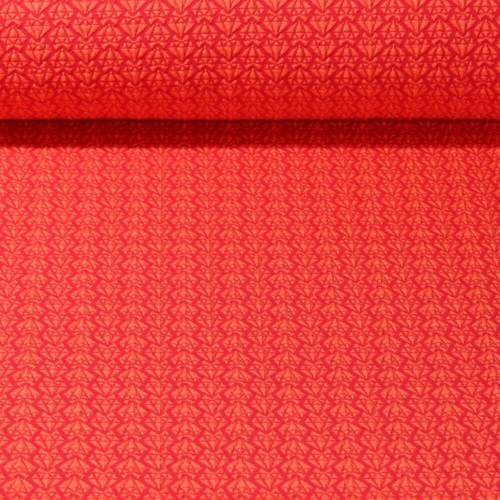 Ce jersey jacquard de Hamburger Liebe apporte un vrai "bling bling" à tes projets de couture - sans paillettes, mais avec d'autant plus de style. Sur un orange chaud, de petites formes de diamants graphiques scintillent dans des tons clairs et contrastés et donnent au tissu une touche moderne et légèrement ludique.