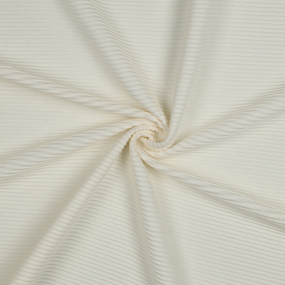 Ce jersey maille côtelé dans un élégant écru est un incontournable intemporel pour votre garde-robe. La fine texture côtelée régulière confère au tissu un aspect allongé élégant qui sublime et affine toutes les silhouettes.