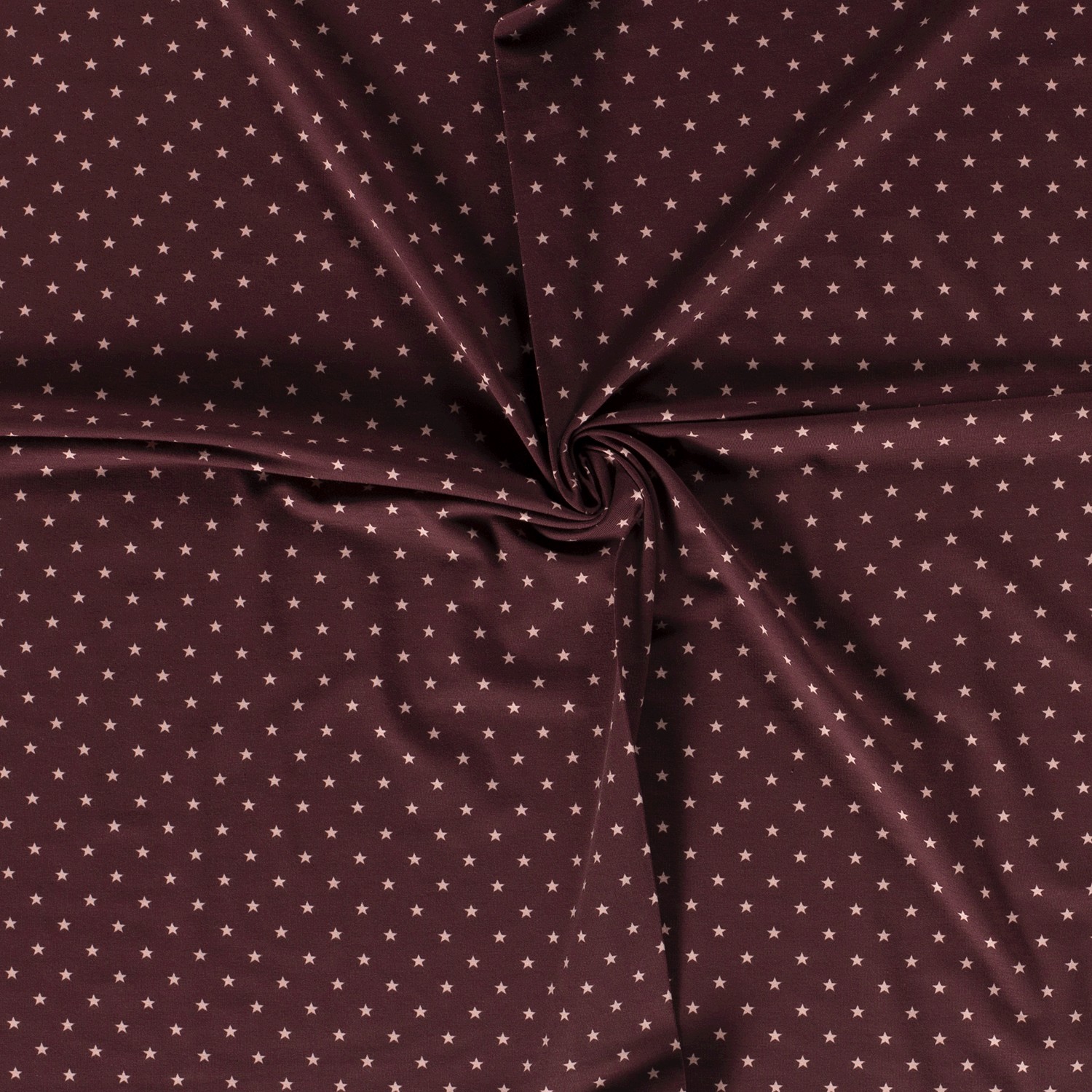 Une touche de magie étoilée pour vos projets de couture : Sur un fond bordeaux profond, dansent d'innombrables petites étoiles claires – serrées, réparties uniformément et merveilleusement finement dessinées. Le motif discret de mini étoiles est ludique sans être envahissant et se combine parfaitement.