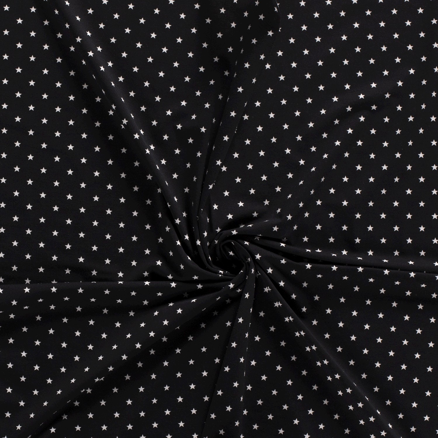 Un classique intemporel avec une touche ludique : sur un fond noir profond scintillent d'innombrables petites étoiles régulières – serrées les unes contre les autres, comme un ciel nocturne en miniature. Le motif all-over fin est moderne tout en restant discret, ce qui rend ce tissu parfait pour les enfants comme pour les adultes.