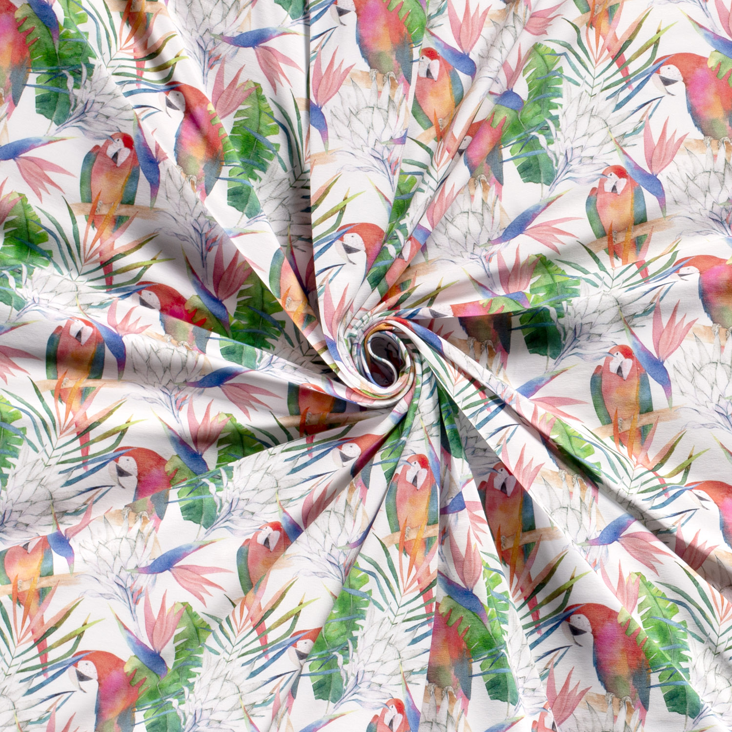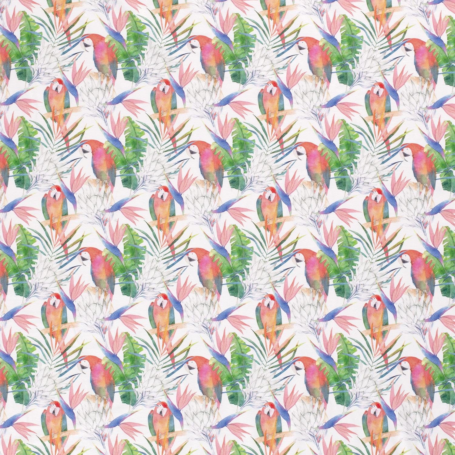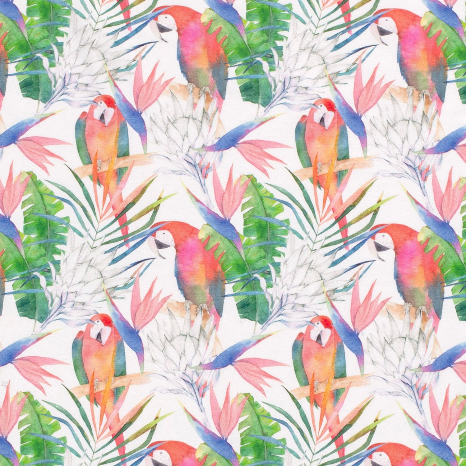 Jersey Perruches et Feuilles de Palmier sur Fond Blanc Numérique