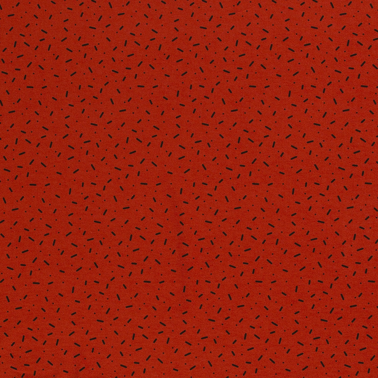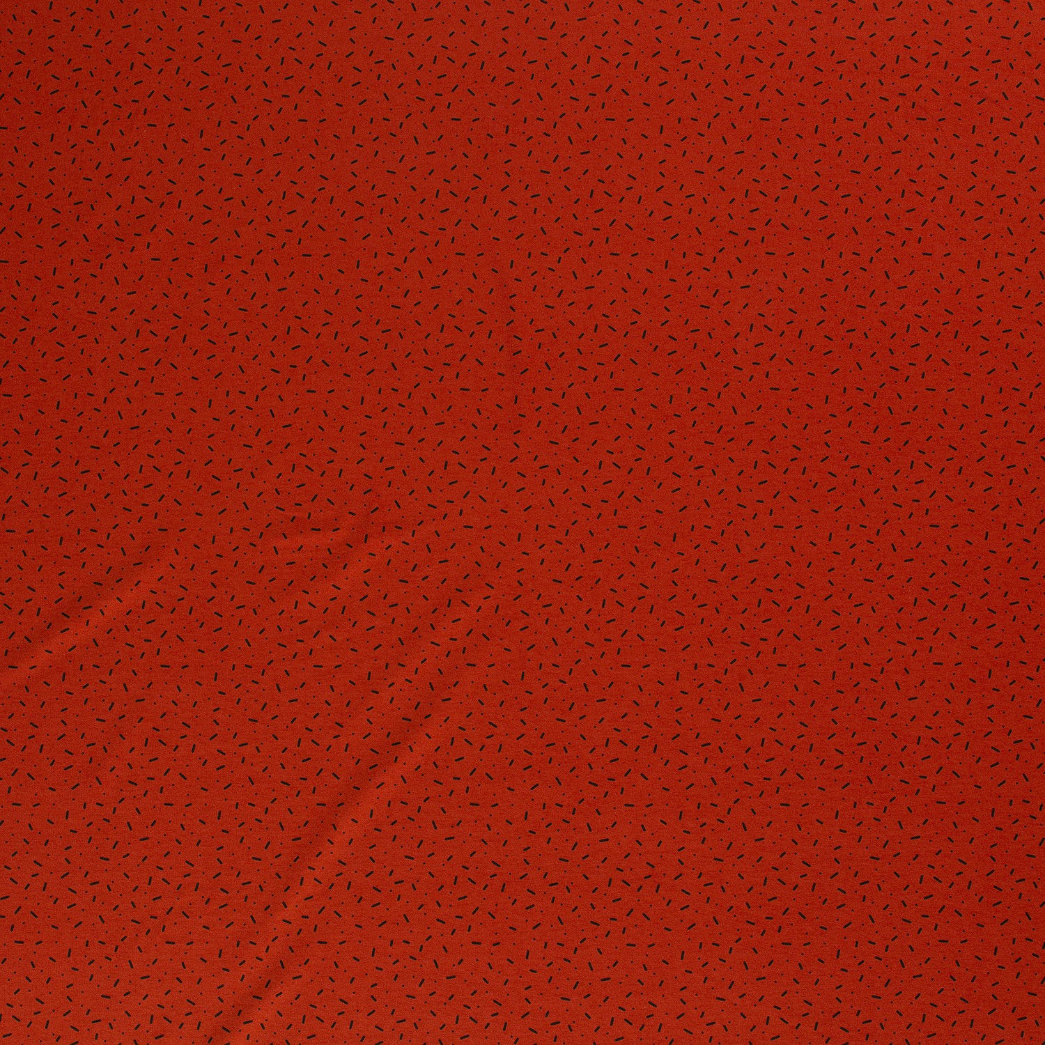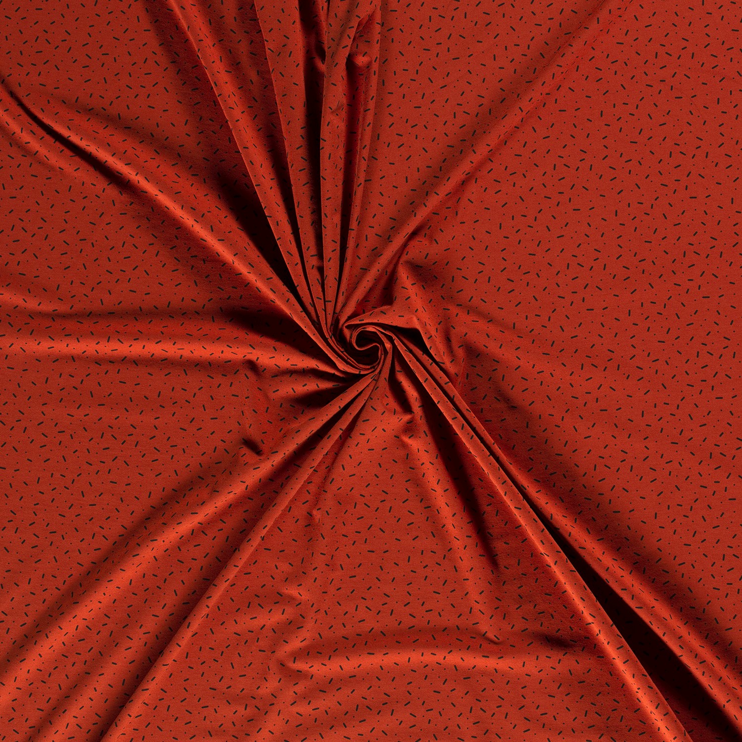Un jersey vivant qui attire immédiatement le regard : sur un fond d’un orange sanguine profond dansent d’innombrables fines lignes claires – telles de petits bâtonnets, dispersés librement mais harmonieusement arrangés. Le motif graphique discret est à la fois moderne et ludique, rappelant de minuscules points en forme de traits.
