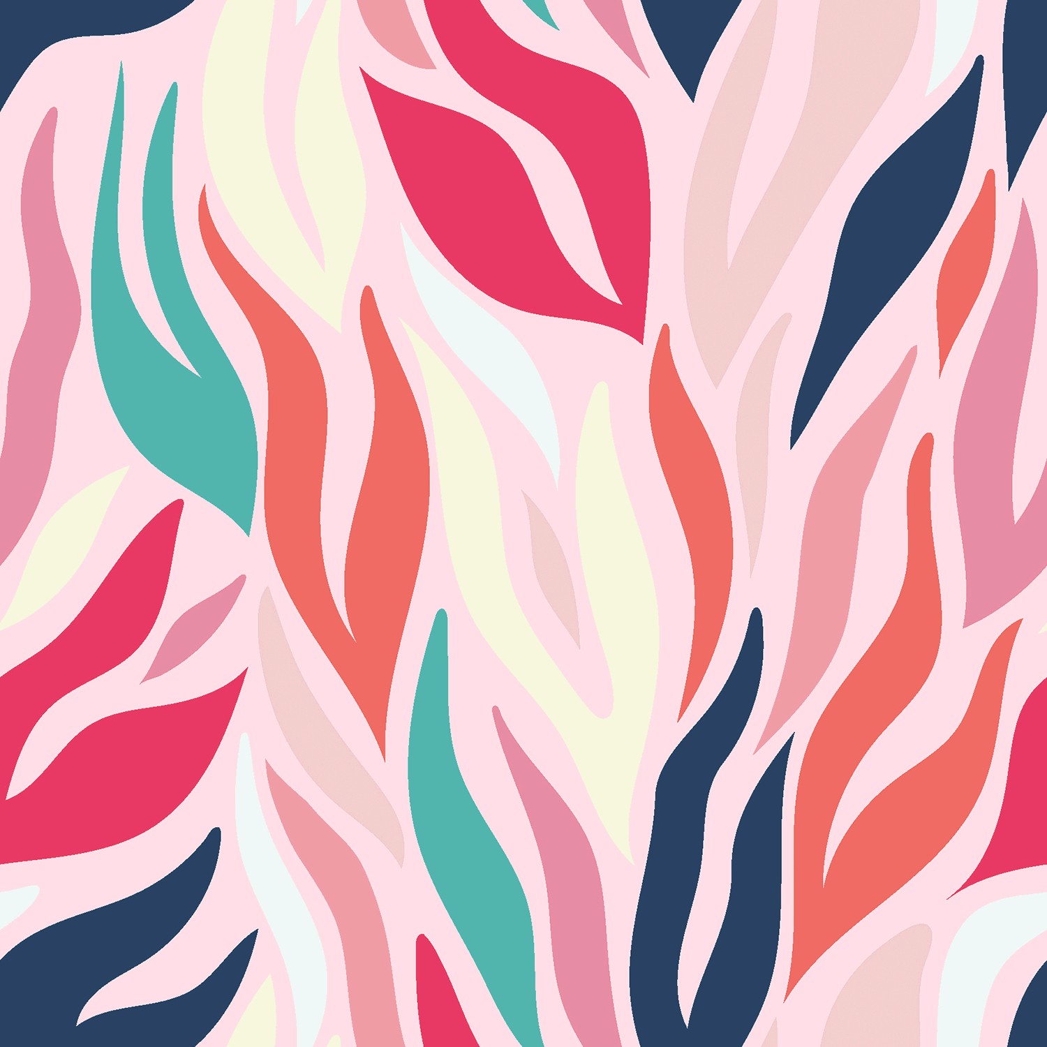 Ce jersey attire tous les regards : sur un délicat lilas clair, des flammes stylisées dans des tons chauds de rouge, orange et jaune dansent sur le tissu comme de petites flammes. Le look rétro captivant est créé par les formes douces et ondulées et la combinaison harmonieuse de couleurs pastel douces et d'accents vifs et lumineux.