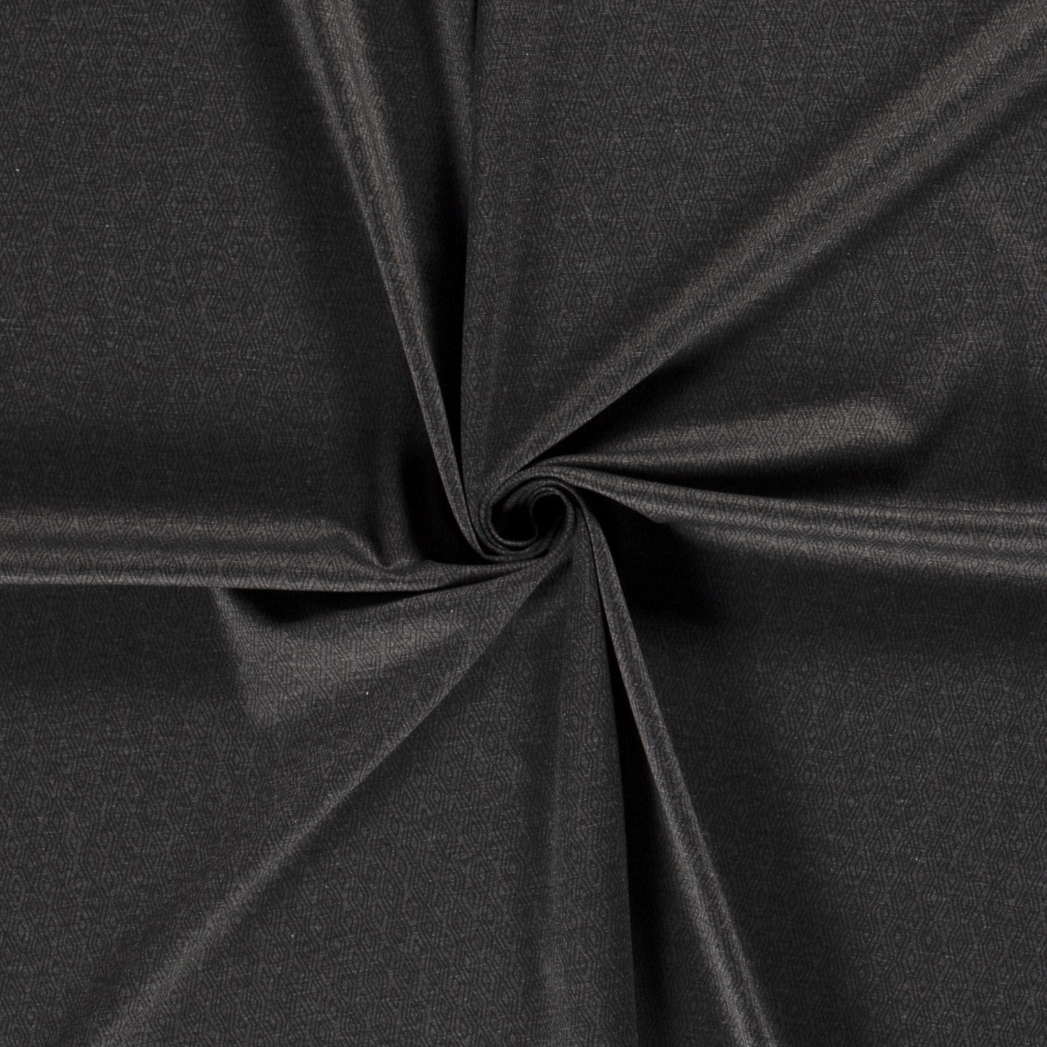 Ce jersey romanit allie une élégante sobriété à un look graphique captivant. Sur un fond mélangé anthracite, de fines lignes se rejoignent pour former un motif losange régulier en vert foncé profond – comme de petits diamants stylisés qui confèrent au tissu une structure noble et moderne.