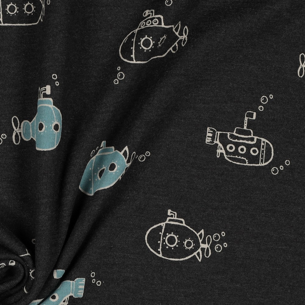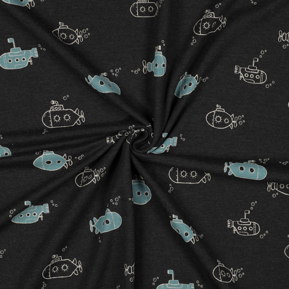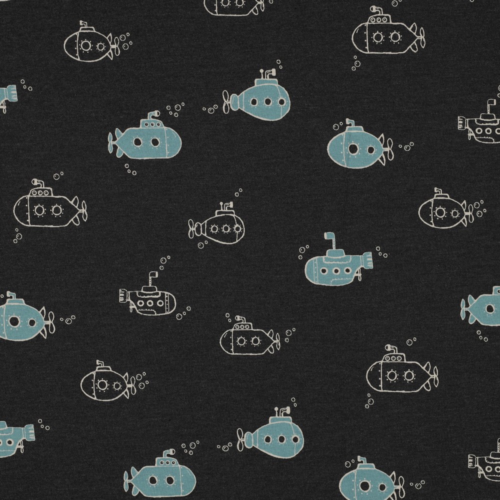 Plongez, s'il vous plaît ! Sur un fond anthracite foncé marbré, de petits sous-marins jaunes glissent joyeusement à travers la mer. De fines lignes ondulées, de délicates bulles d'air et une eau suggérée confèrent au design une atmosphère sous-marine vivante, sans être trop colorée ou agitée.