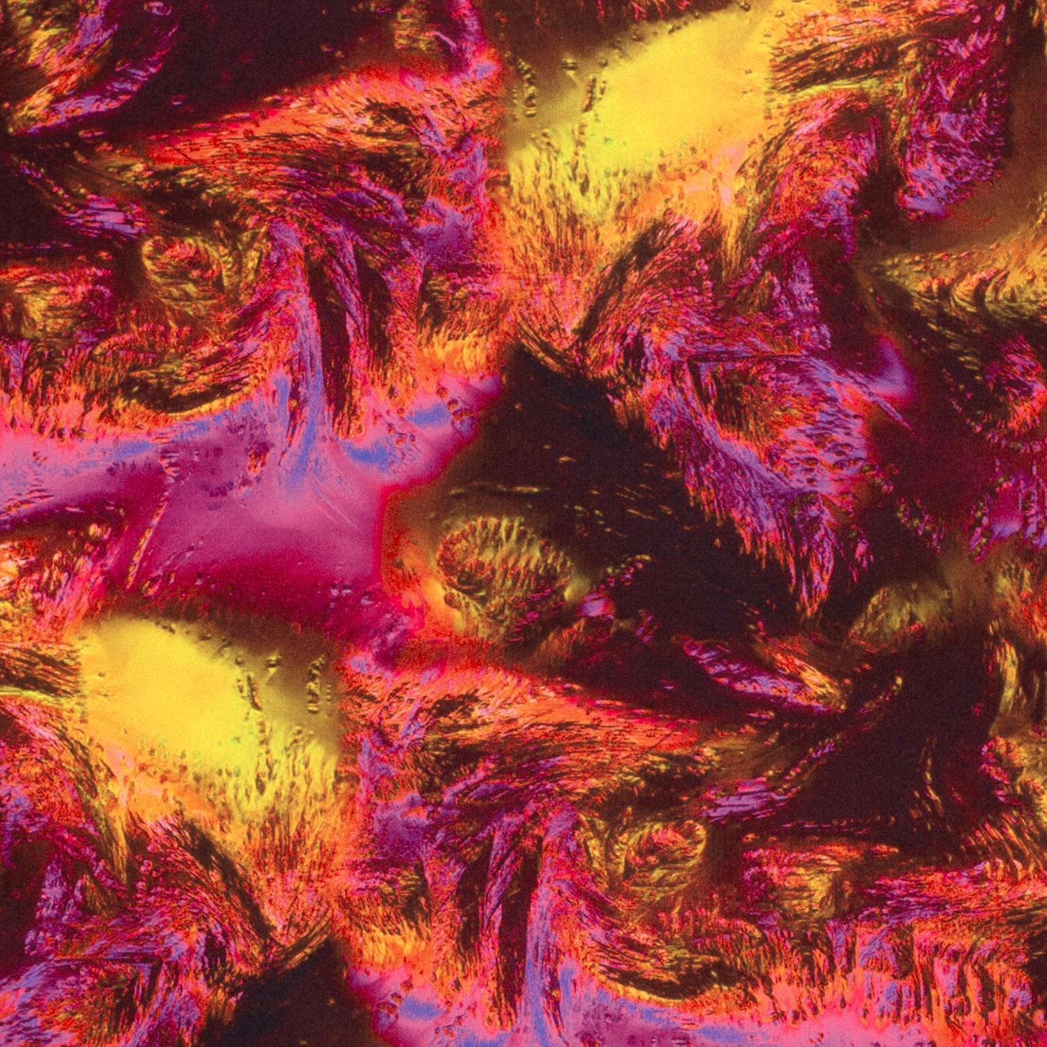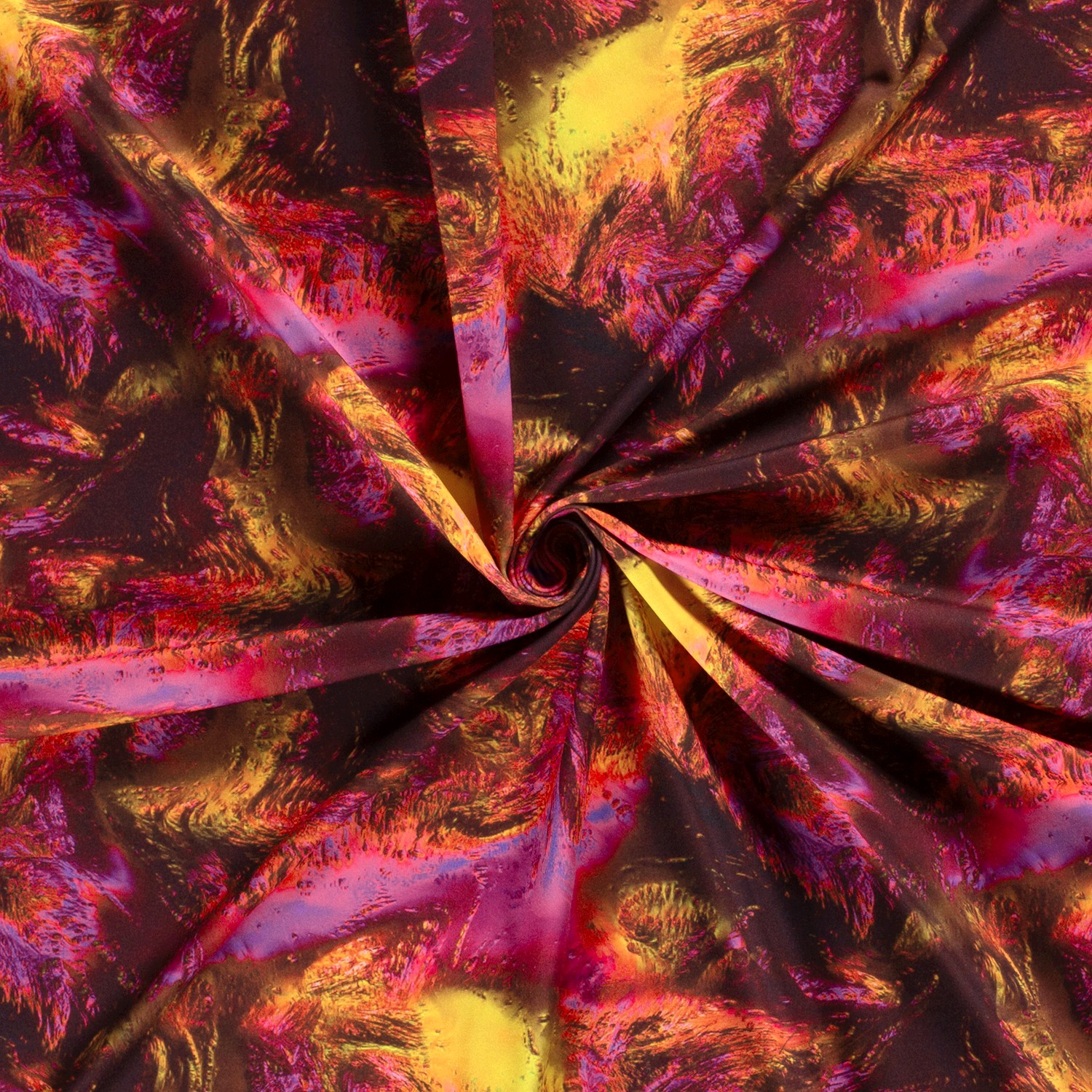 Ce jersey sportswear apporte toute l'énergie d'une éruption volcanique à votre table de couture : un rose éclatant rencontre un jaune lumineux, entrecoupés de nuances orange et rouges incandescentes qui coulent comme de la lave liquide sur le tissu. Les parties plus sombres rappellent des pierres de lave refroidies et font briller encore plus les couleurs intenses – un design véritablement affirmé pour ceux qui veulent se démarquer.