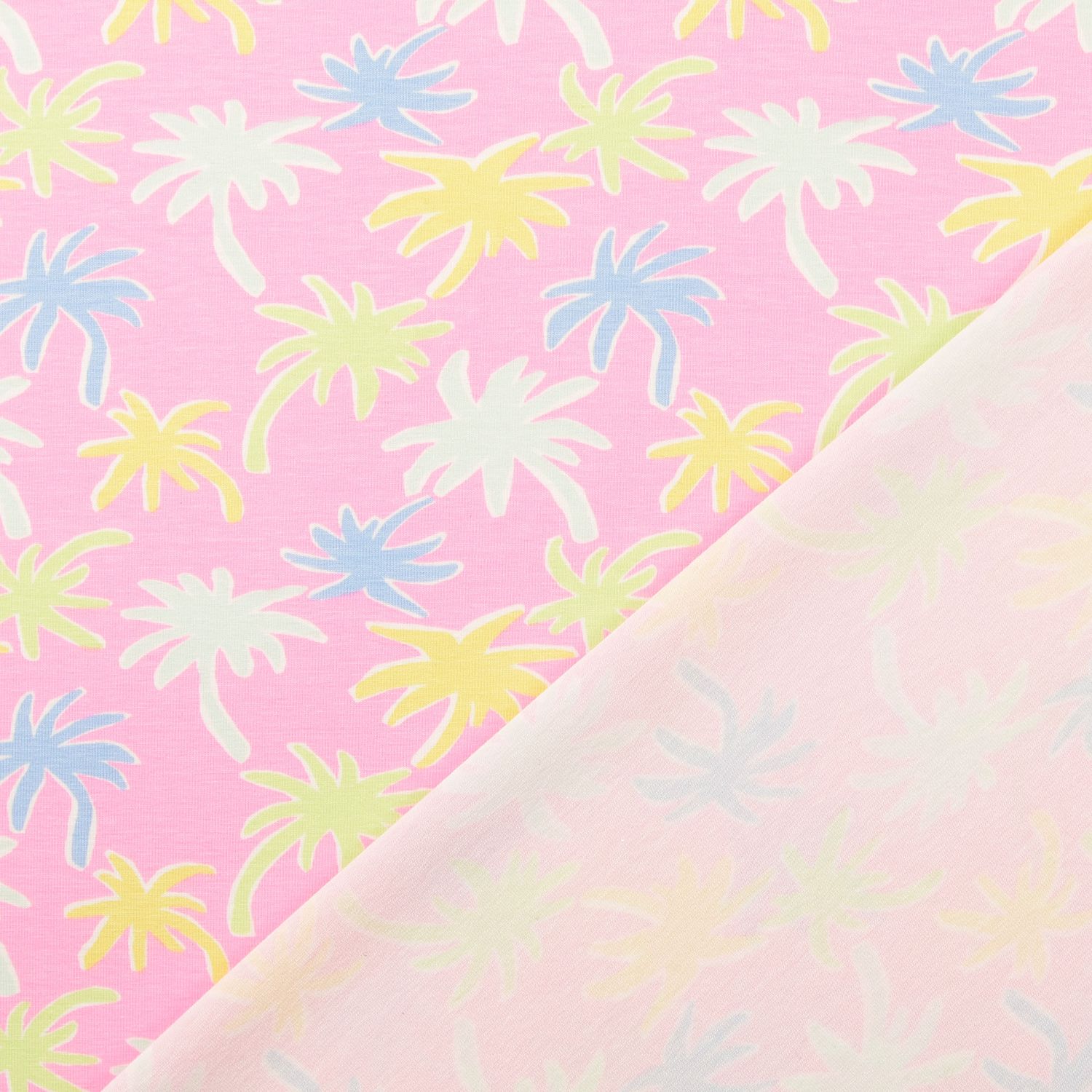 Jersey - Tissu d'assemblage Palmiers Rose