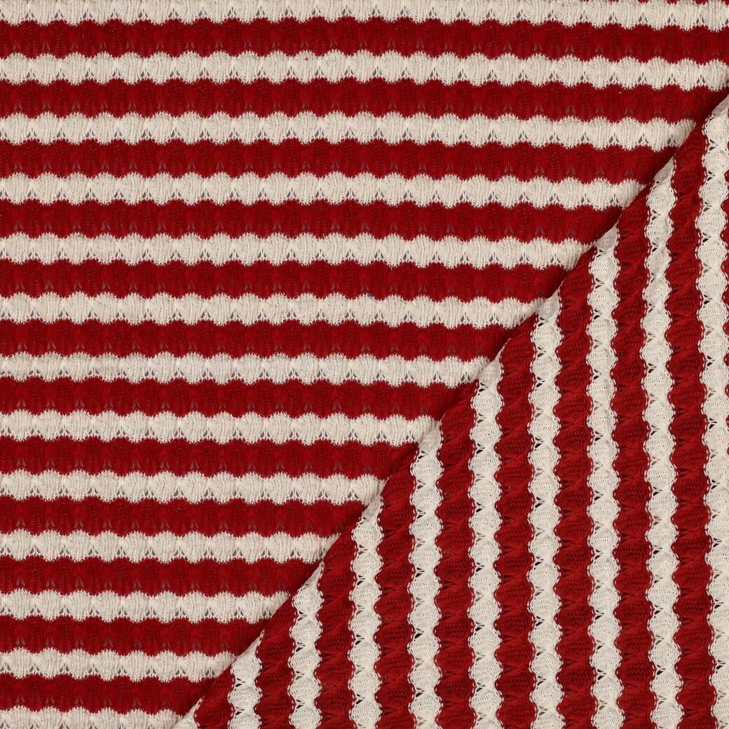 Jersey tricoté - Rayures Rouge Ecru