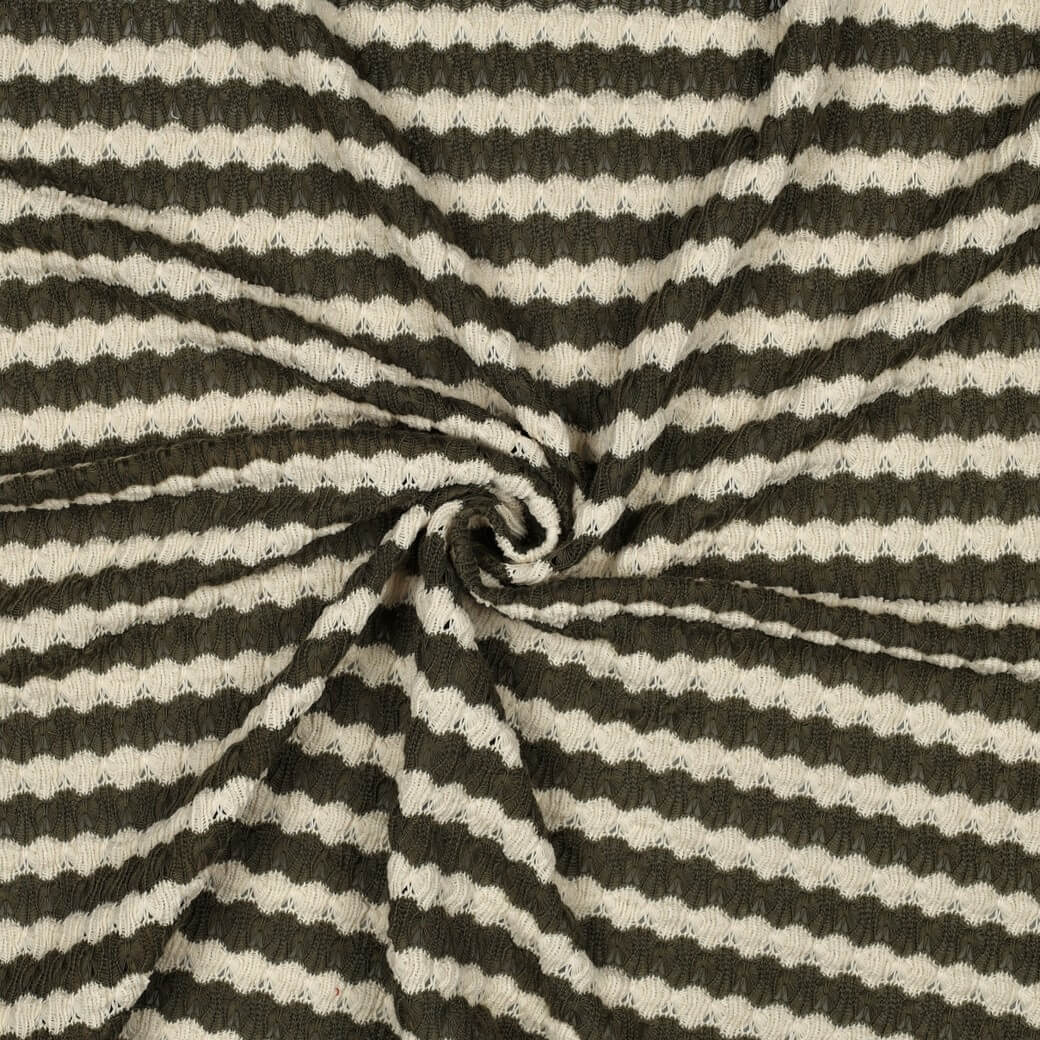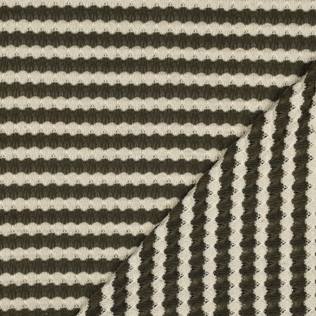 Jersey tricoté - Rayures Vert olive Ecru