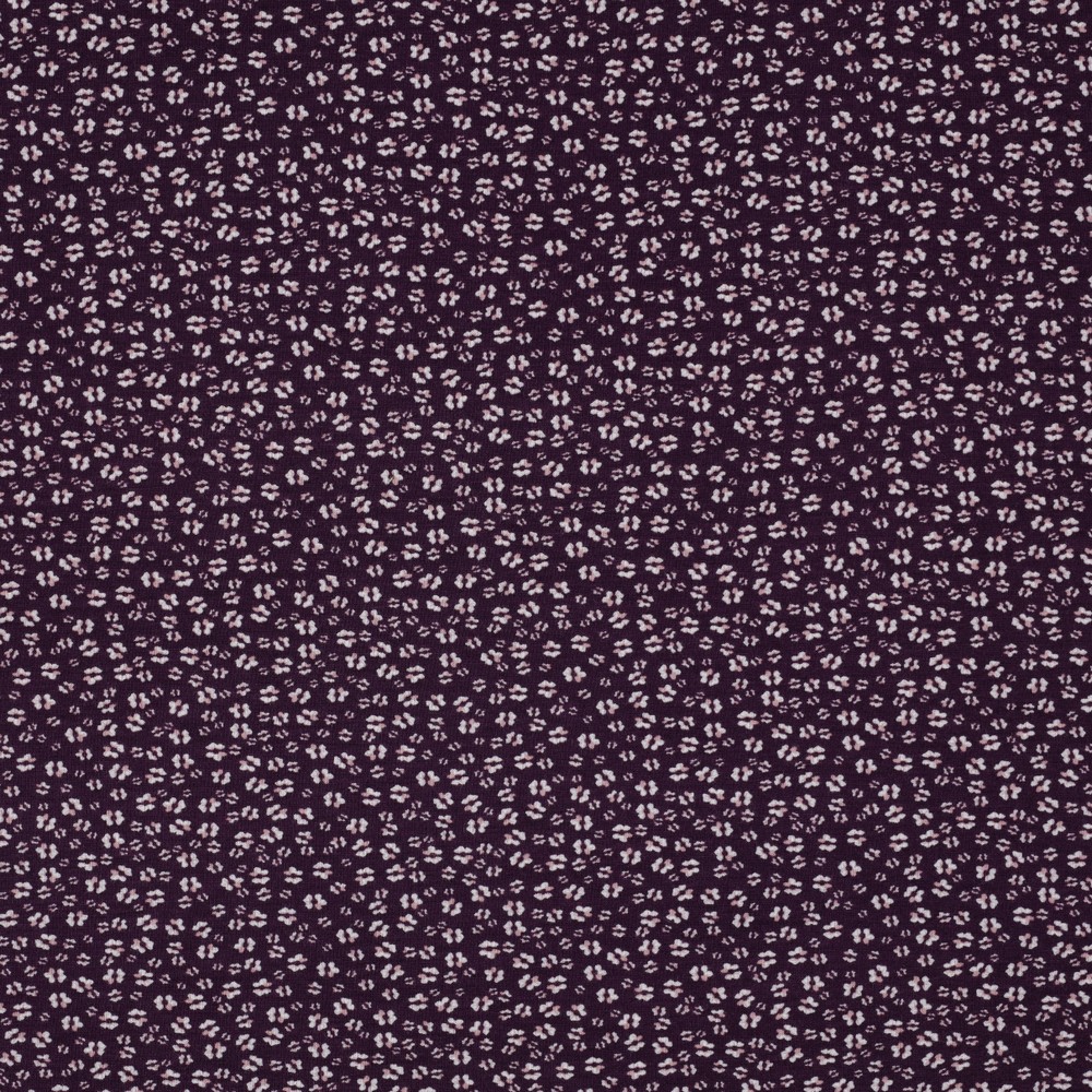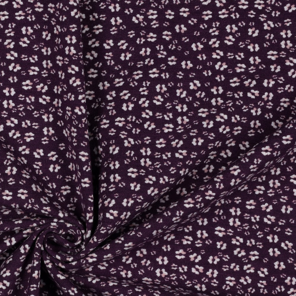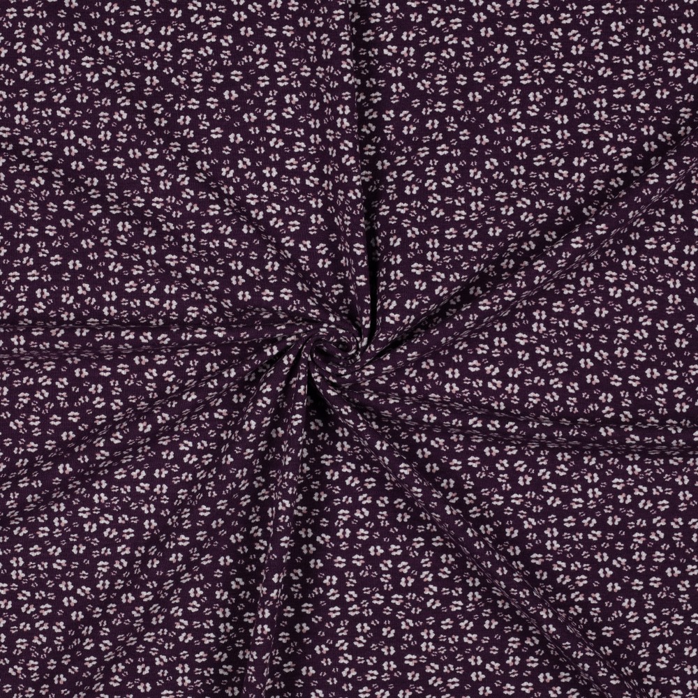 Délicat, ludique et pourtant merveilleusement élégant : sur ce jersey noble, de petites fleurs dans des tons naturels harmonieux s’épanouissent sur un fond aubergine profond. Le violet foncé et intense fait ressortir délicatement les fleurs claires et confère au design une chaleur au charme légèrement romantique.